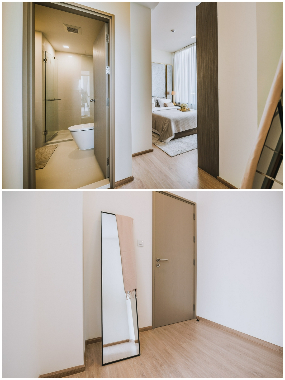 เมื่อเปิดเข้าไปจากทางห้องนอน เราจะเห็นประตูเข้า-ออกที่สามารถเชื่อมไปยังห้องครัวได้อีกช่องทางหนึ่ง ซึ่งห้องน้ำนี้จะสามารถใช้รองรับแขกได้เป็นอย่างดี โดยไม่ต้องผ่านเข้าไปในพื้นที่ส่วนตัวของเราเลย