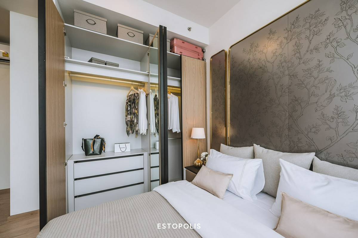สำหรับในส่วนของตู้เสื้อผ้าที่ทางโครงการ Centric Ratchayothin บิลต์อินมาให้นั้น ก็มีขนาดใหญ่จัดเต็ม ภายในครบทั้งราวแขวน, ลิ้นชัก 3 ช่อง, ชั้นวางของ และหน้าบานกระจกเงา ส่วนด้านบนจะเหลือพื้นที่ไว้ให้จัดเก็บของที่ไม่ค่อยได้ใช้งาน อย่าง กระเป๋าเดินทาง เป็นต้น