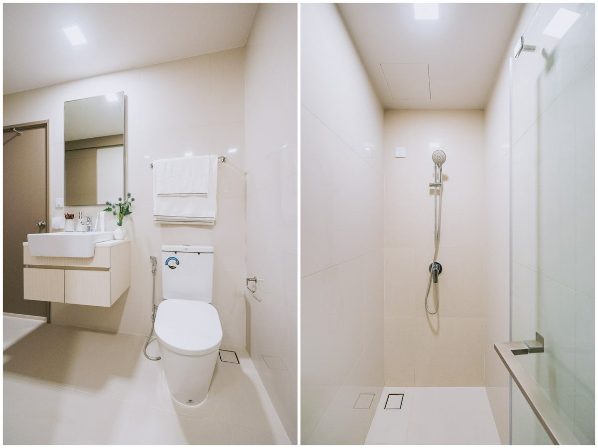 ภายในห้องน้ำ จะมีพื้นที่โซนแห้งยาวลึกเข้าไปตามขนาดห้อง โดยจะมีโซนเปียกอย่าง Shower Box ซ่อนอยู่บริเวณด้านขวา ตรงข้ามกับโถสุขภัณฑ์นั่นเอง