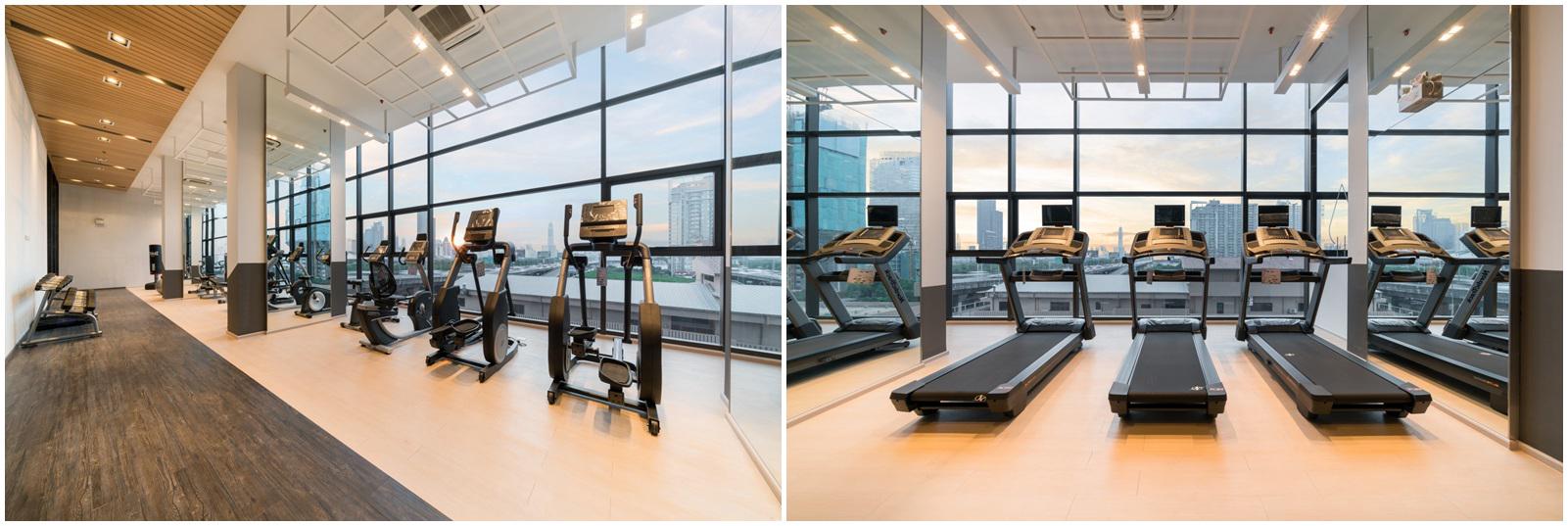 ติดกับโซน Chilling Area จะเป็นส่วนของห้อง Fitness ขนาดใหญ่ ที่เพียบพร้อมไปด้วยอุปกรณ์ออกกำลังกายมากมาย