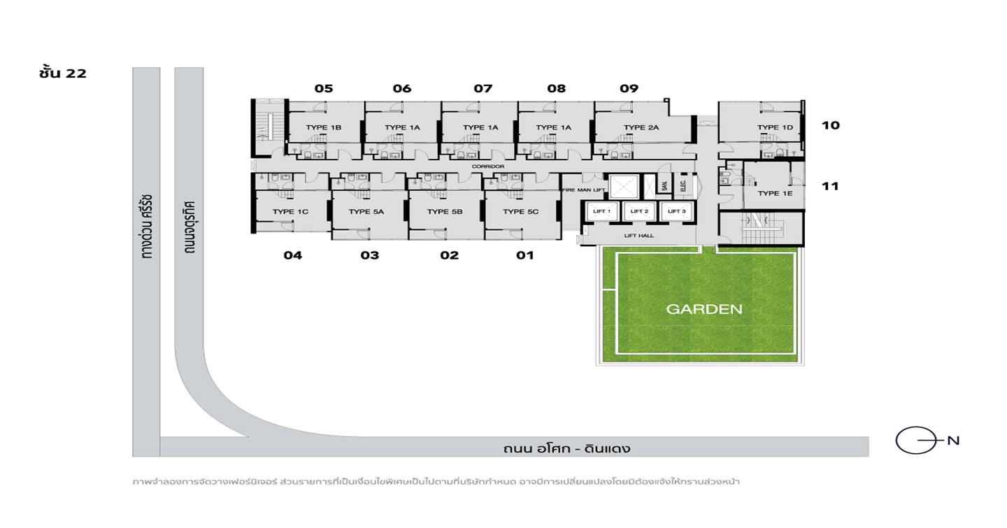 ขึ้นมาที่ชั้น 22 ของโครงการ Chewathai Residence Asoke (ชีวาทัย เรสซิเดนซ์ อโศก) จะมียูนิตพักอาศัย 11 ห้อง พร้อมสวนให้พักผ่อนด้านนอก