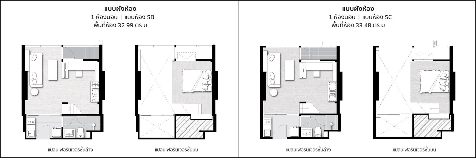 • 1 Bedroom : Loft Duplex ขนาด 29.17 ตร.ม - 34.52 ตร.ม