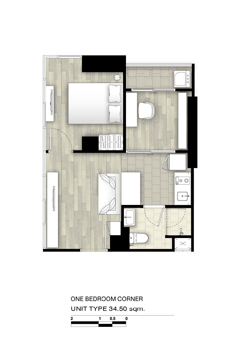 - 1 Bedroom Corner ขนาดพื้นที่ใช้สอย 34.50 ตารางเมตร