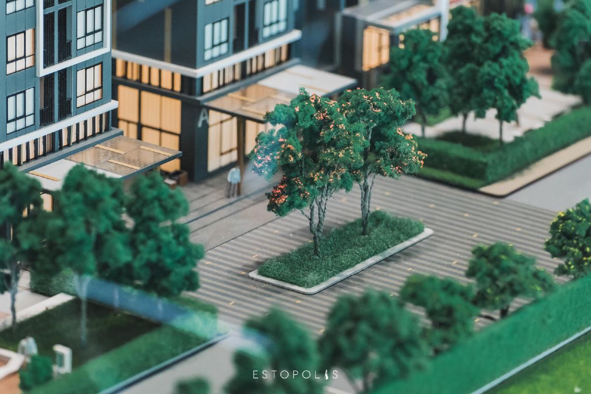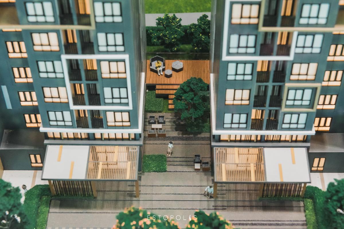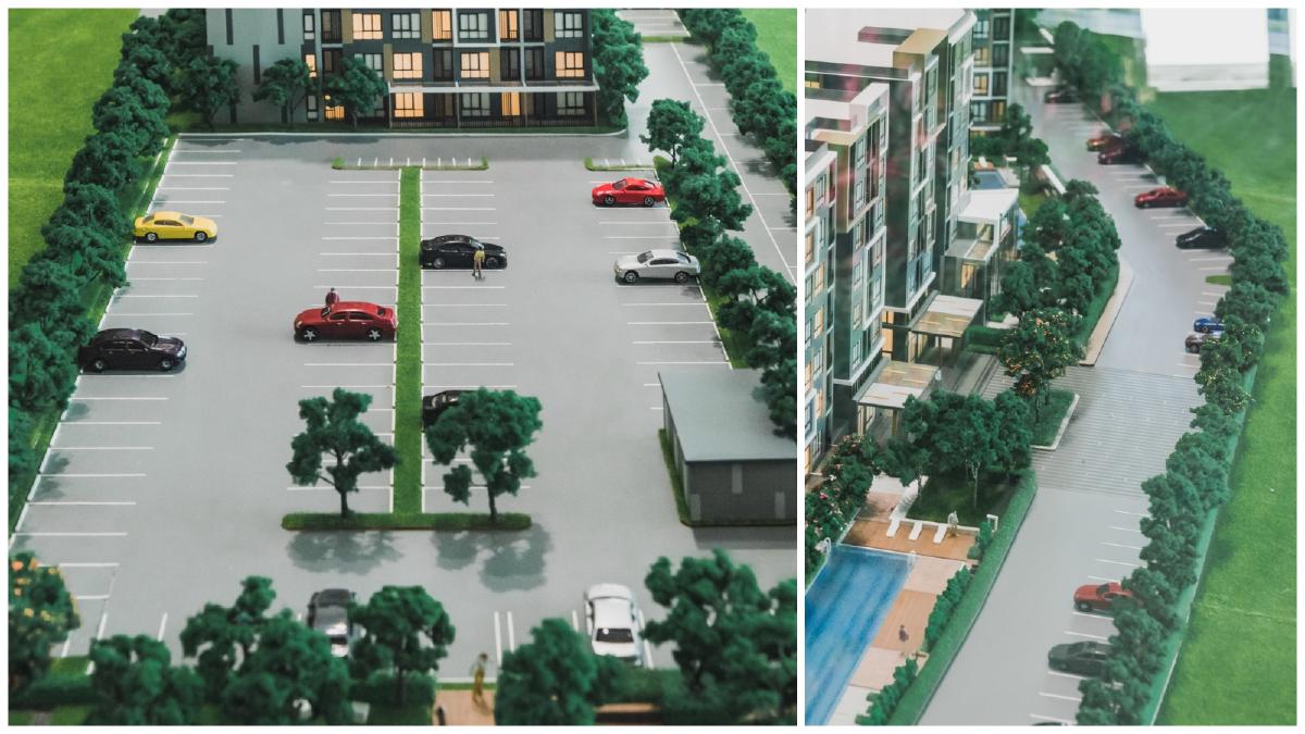 - อาคาร A จะอยู่ร่นจากถนนเข้าไปประมาณ 50 เมตร ช่วยให้ผู้พักอาศัยห่างไกลจากเสียงรบกวนภายนอก โดยคาดว่าในอนาคต อาจมีแผนพัฒนาให้กลายเป็นร้านค้าหรือสาธารณูปโภค