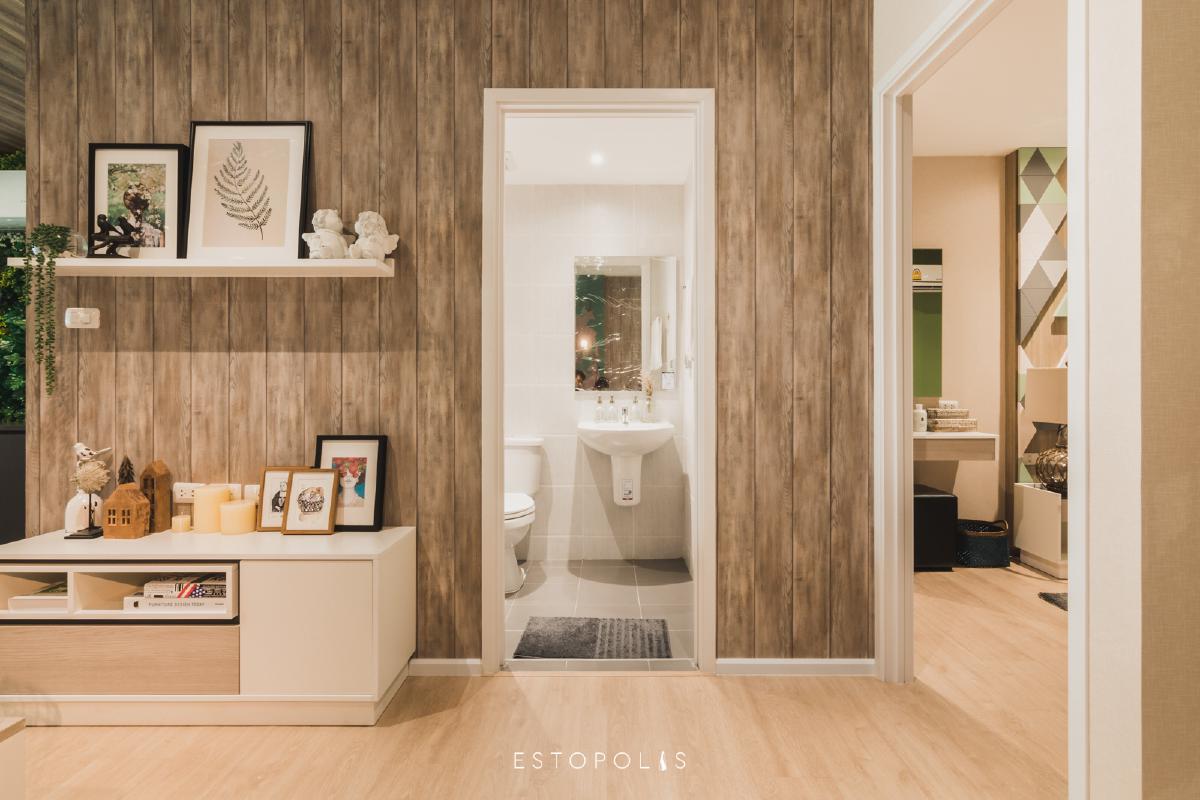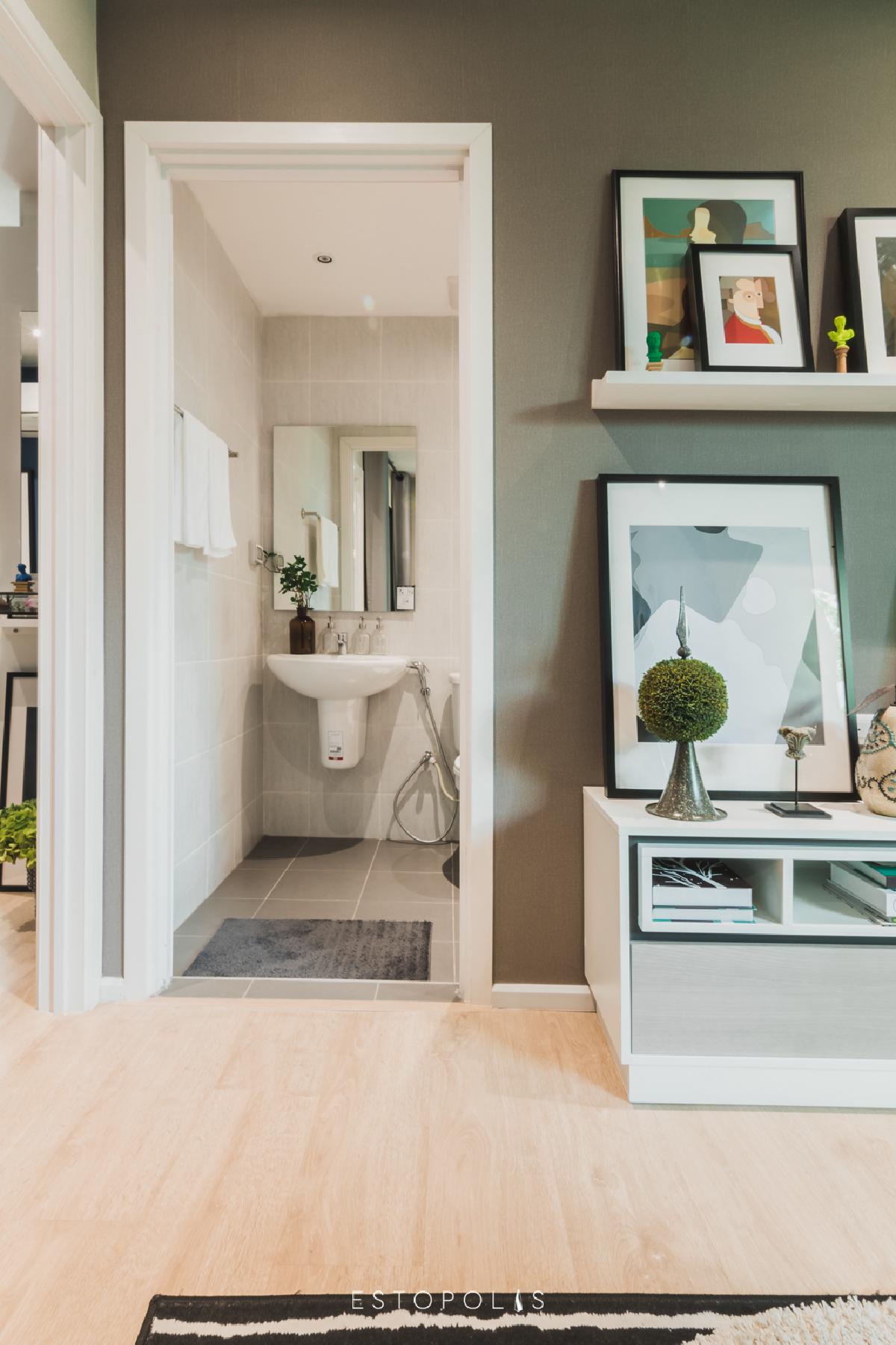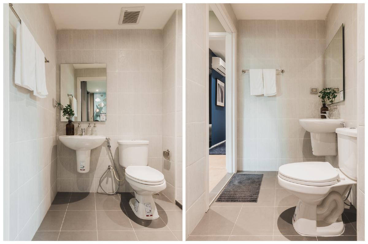 สำหรับห้องน้ำจะอยู่ตรงห้องรับแขกเหมือนกันทั้งโครงการ เพื่อให้ผู้พักอาศัยสัมผัสถึงความเป็นส่วนตัว เวลามีแขกหรือเพื่อนมาห้อง จะได้ไม่ต้องเข้าไปยังห้องนอนด้านใน