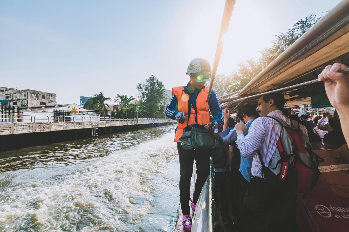 มีเรื่องราวมากมายระหว่างเดินทางบนเรือโดยสาร ทั้งเพื่อนร่วมทางที่ต่างคอยช่วยกันประคับประคอง ดึง ยามเรือแล่นเร็วๆ ทั้งความเก่งกาจของพนักงานเก็บค่าโดยสาร ที่สามารถทรงตัวบนกราบเรือได้เป็นอย่างดี มองบรรยากาศบนเรือไปเรื่อยๆ รู้สึกตัวอีกทีก็ถึงที่ทำงานแล้ว