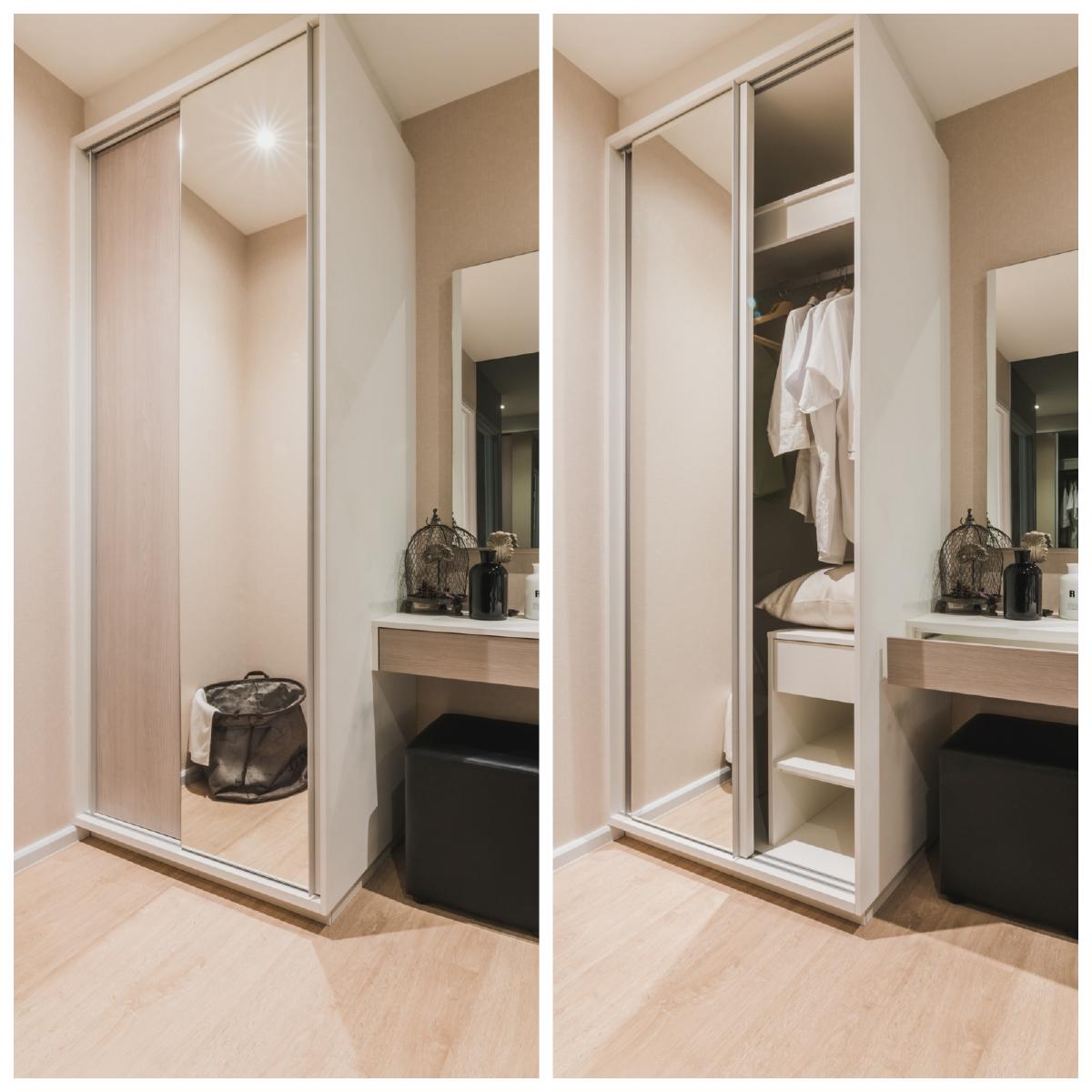 โดยทางโครงการ Icondo Serithai Green Space (ไอคอนโด เสรีไทย กรีน สเปซ) ได้บิ้วท์อินโต๊ะเครื่องแป้งและตู้เสื้อผ้าไว้คู่กัน เพื่อความสะดวกในการใช้งาน แถมยังมีพื้นที่กว้างขวาง ไม่อึดอัด