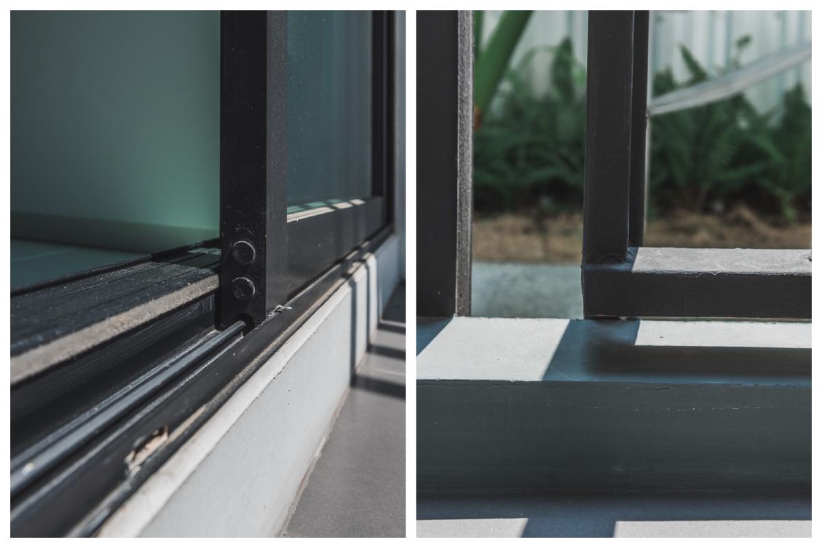 ทั้งด้านนอกและในระเบียงยกธรณีสูงเกือบ 2 นิ้ว เพื่อป้องก้นสิ่งสกปรกและน้ำฝน