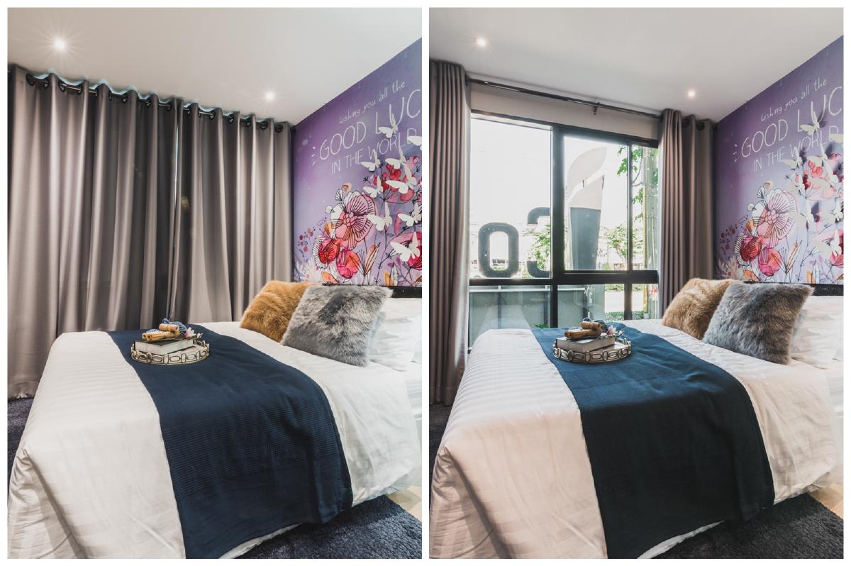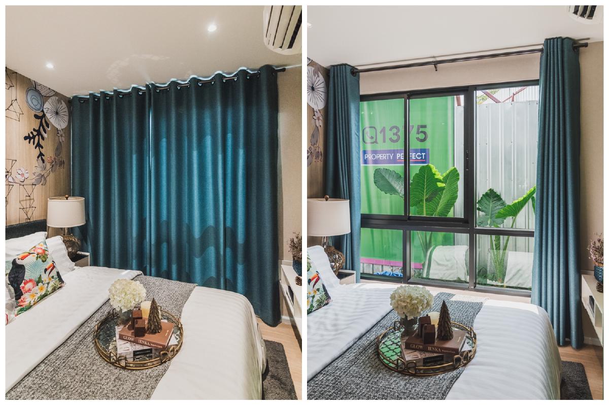 หน้าต่างกว้างเต็มผนังห้อง ช่วยให้ห้องนอนของเราดูสว่างและปลอดโปร่ง เหมาะการแก่พักผ่อนในทุกๆ วัน แล้วอย่าลืมแขวนผ้าม่านไว้คอยบังแดดด้วย