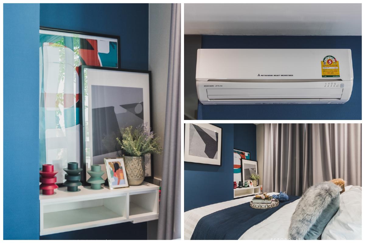 จัดสรรพื้นที่ห้องให้ตอบโจทย์ทุกการใช้งาน แบ่งเป็นสัดเป็นส่วนชัดเจน พร้อมตกแต่งด้วยเฟอร์นิเจอร์บิ้วท์อิน อาทิเช่น ชั้นวางโทรทัศน์ โซฟา และโต๊ะกลาง โดยห้องจริงจะติดเครื่องปรับอากาศที่ห้องนั่งเล่นให้ด้วยเช่นกัน