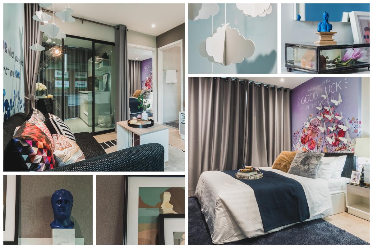 นอกจากพื้นที่ภายนอกที่ออกแบบให้เหมาะแก่การอยู่อาศัยแล้ว ภายในก็ตกแต่งให้สอดรับต่อการพักผ่อนเช่นกัน โดยตัวห้องมีการแบ่งพื้นที่ใช้สอยไว้ครบครัน พร้อมตกแต่งแบบ Fully Funished และให้เฟอร์นิเจอร์บิ้วอินหลายตัว อาทิเช่น ชั้นวางโทรทัศน์ , โต๊ะเครื่องแป้ง , ตู้เสื้อผ้า , ชุดครัว และเครื่องปรับอากาศ เป็นต้น เหมาะสำหรับผู้พักอาศัย 1-2 คน ที่มองหาความคุ้มค่าในราคาเอื้อมถึง