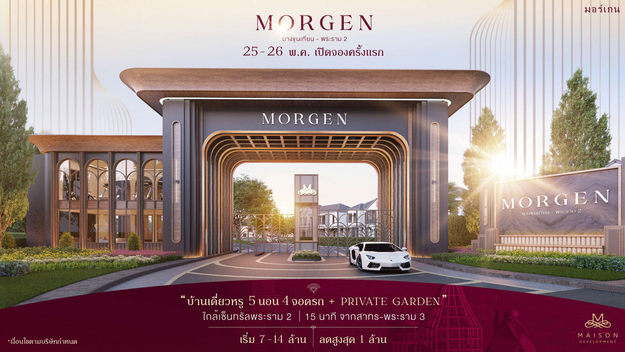 เตรียมพบกับ บ้านเดี่ยวหรูใจกลาง พระราม 2 โครงการ “Morgen บางขุนเทียน - พระราม 2” ดีไซน์สไตล์ French Colonial พร้อมพื้นที่การใช้ชีวิตขนาดใหญ่ 350 ตร.ม. เปิดจองครั้งแรก 25-26 พค. นี้