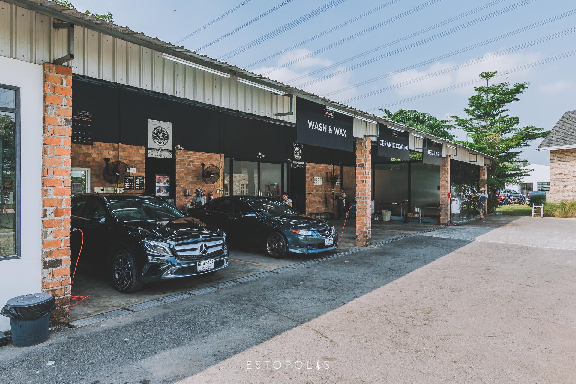 ด้านในเป็นร้านล้างรถที่เปิดให้บริการตั้งแต่เช้า