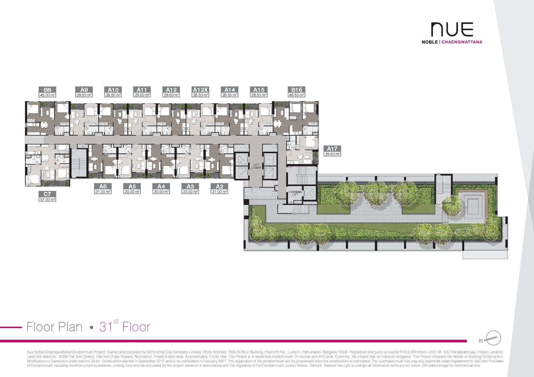 ส่วนชั้น 31 จะเหลือจำนวนห้องพักอาศัยเพียง 16 ยูนิตเท่านั้น เนื่องจากพื้นที่ด้านหลังอาคารถูกปรับให้เป็นสวนส่วนกลางแทน เหมาะสำหรับคนรักธรรมชาติ