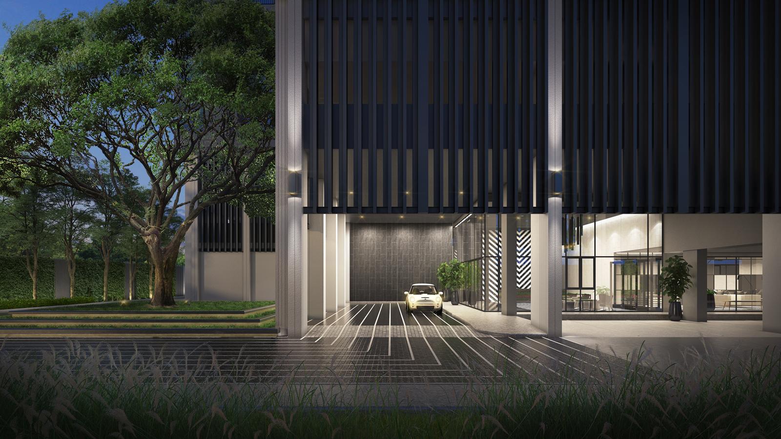 - หน้าโถงล็อบบี้มีจุด Drop off ให้วนรถได้ ก่อนจะเข้าสู่ที่จอดรถใต้อาคาร เพื่อความสะดวกต่อผู้พักอาศัย