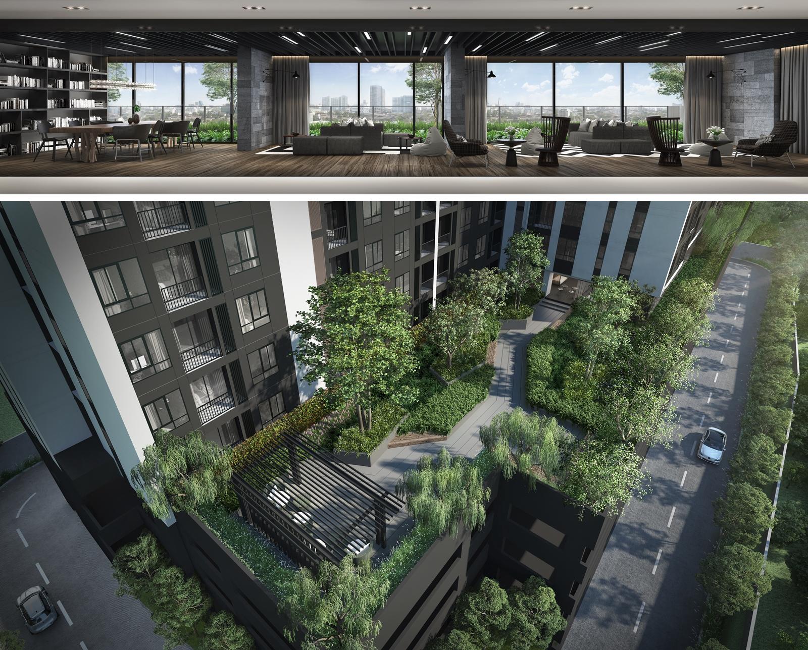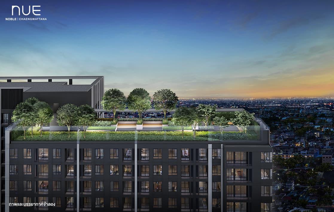 โครงการ NUE Noble Chaengwattana (นิว โนเบิล แจ้งวัฒนะ) จะมีสวนอีกจุดอยู่ตรงชั้นดาดฟ้า สามารถช่วยลดอุณหภูมิและความร้อนที่กระทบลงมายังอาคารได้