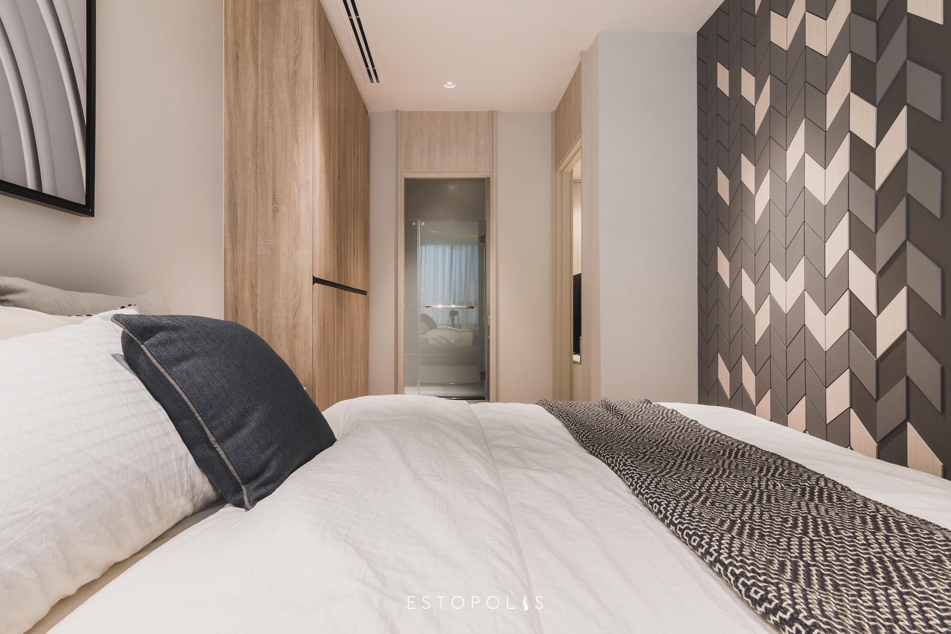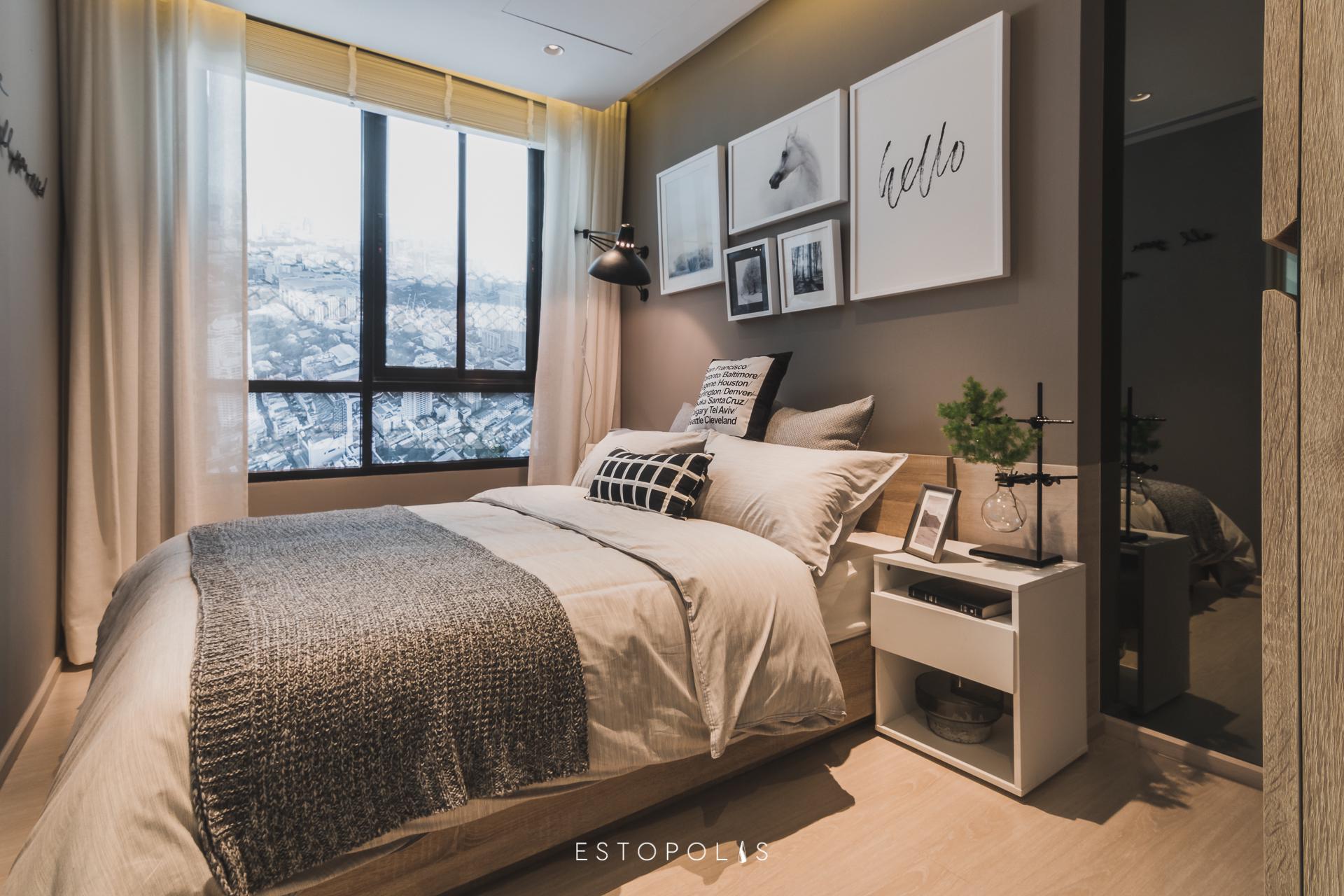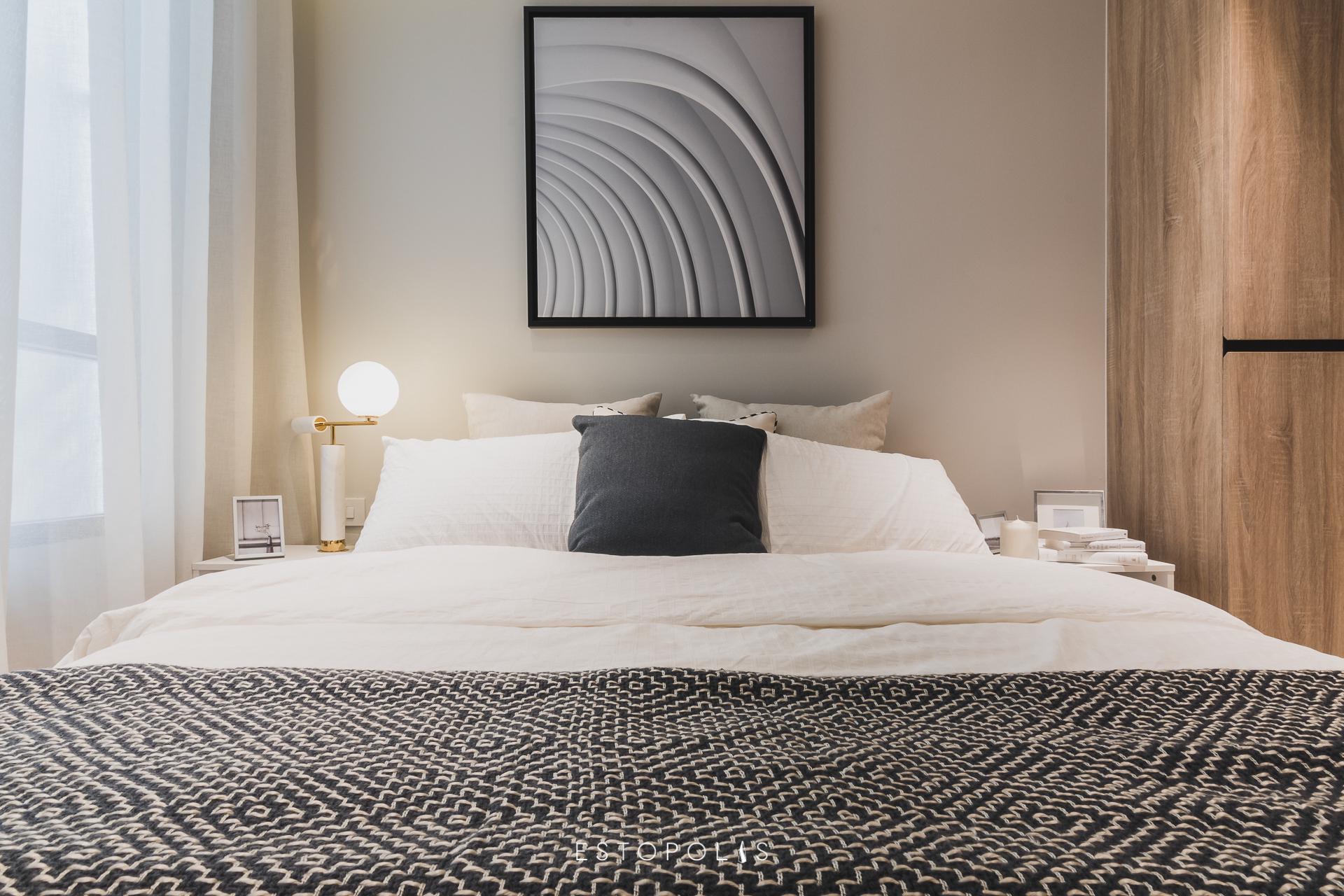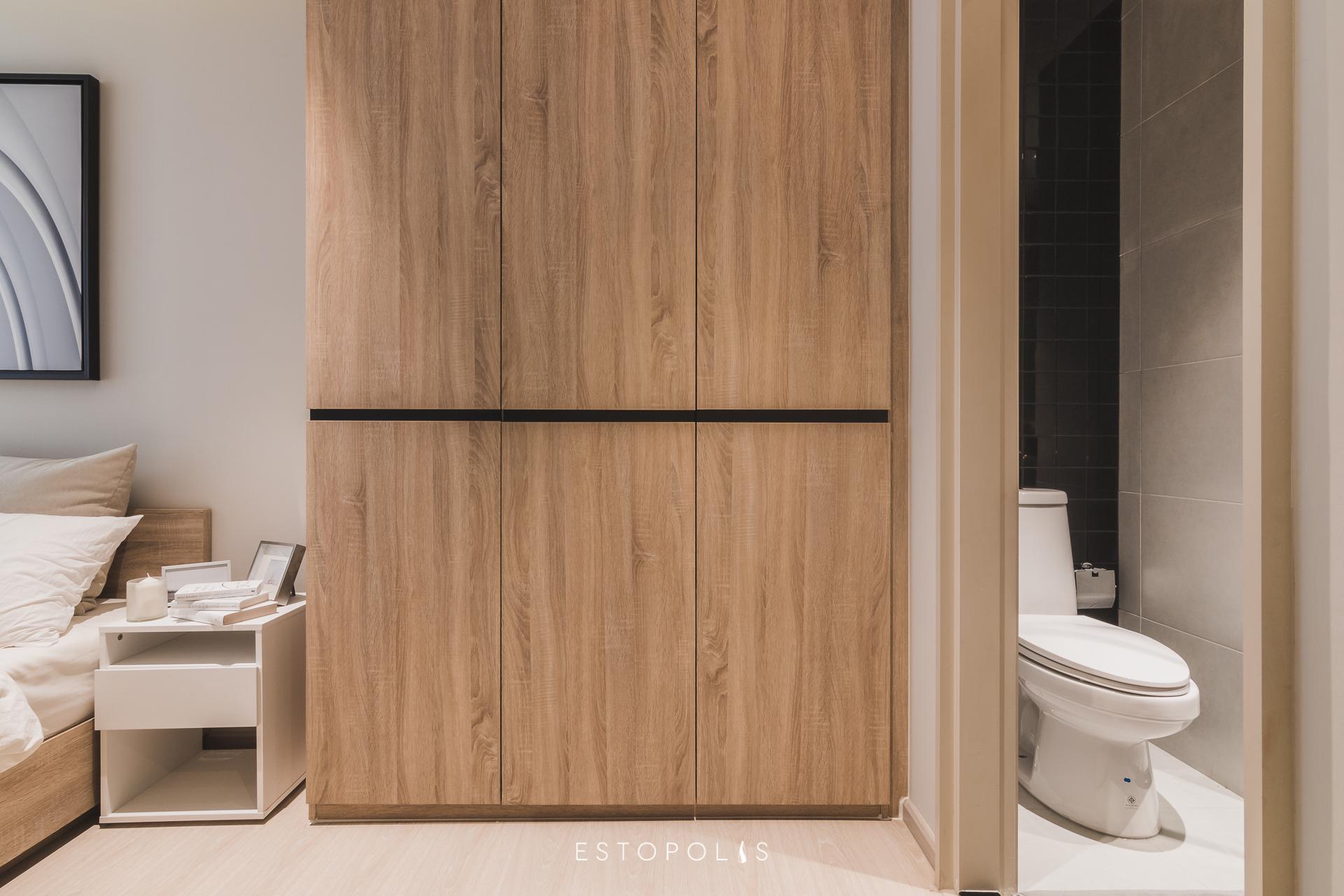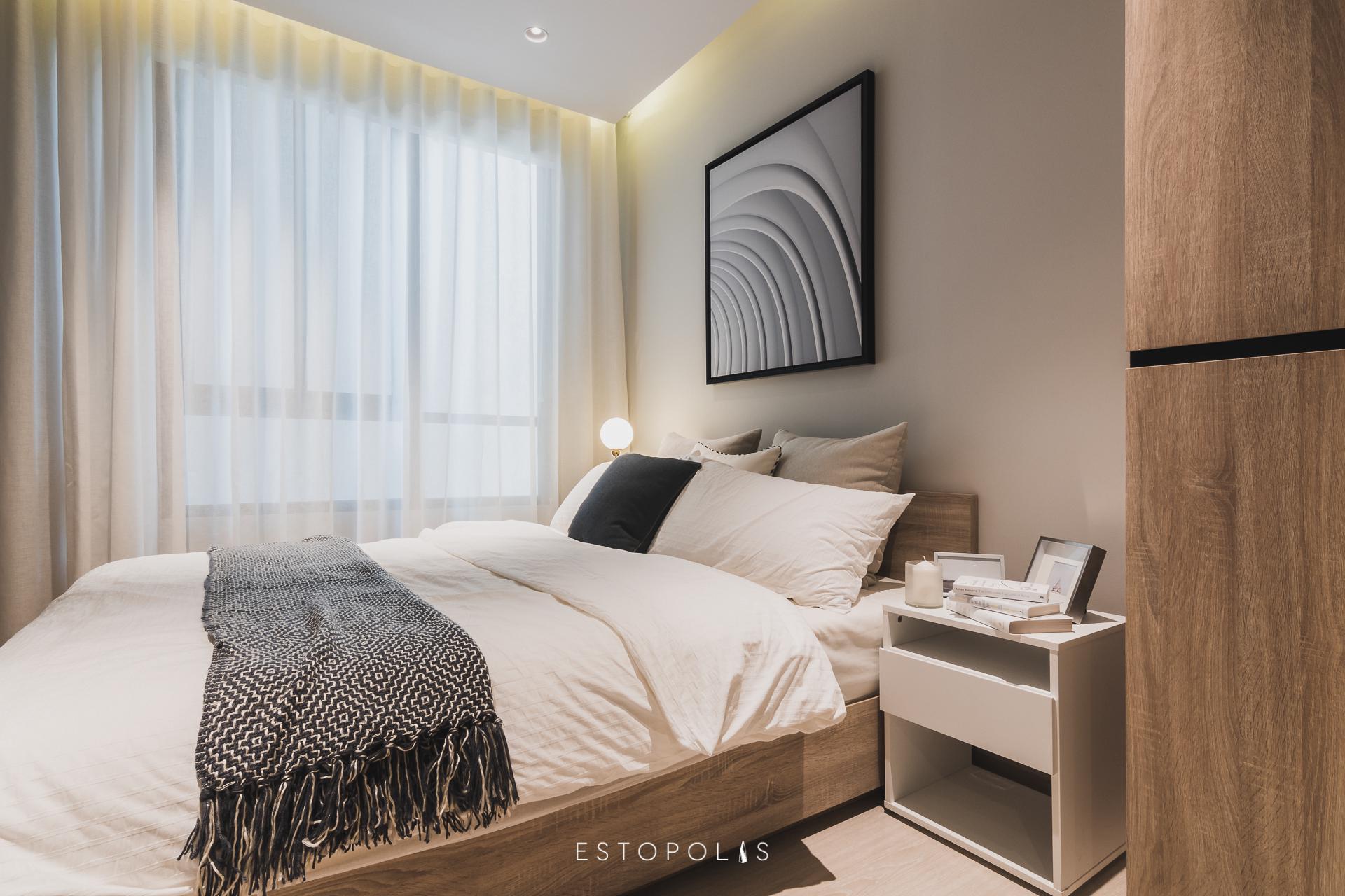 ขยับเข้าใกล้ช่วงเวลาพักผ่อนมากขึ้นด้วย ห้องนอน ที่มีเฟอร์นิเจอร์บิ้วท์อินให้ค่อนข้างครบ ตอบโจทย์คนที่ไม่ชอบความยุ่งยาก สามารถเข้าอยู่ได้เลย โดยตัวห้องจะเชื่อมกับห้องนั่งเล่น มีห้องน้ำอยู่ด้านใน จึงเหมาะสำหรับผู้ที่รักสงบ ไม่ค่อยมีเพื่อนหรือแขกมาเยี่ยมห้อง