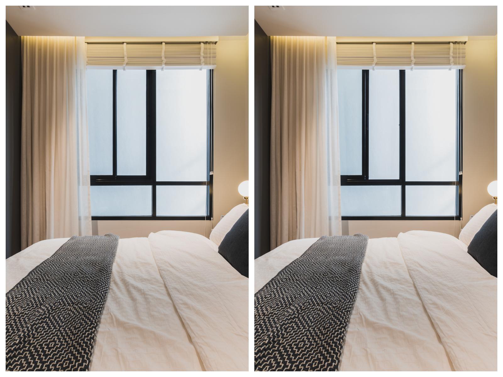 ริมสุดเป็นหน้าต่างบานสูง เอาไว้เปิดรับลมและแสงจากธรรมชาติ ที่จะช่วยให้บรรยากาศของห้องนอนมีความน่าอยู่มากขึ้น อยู่แล้วไม่อึดอัด