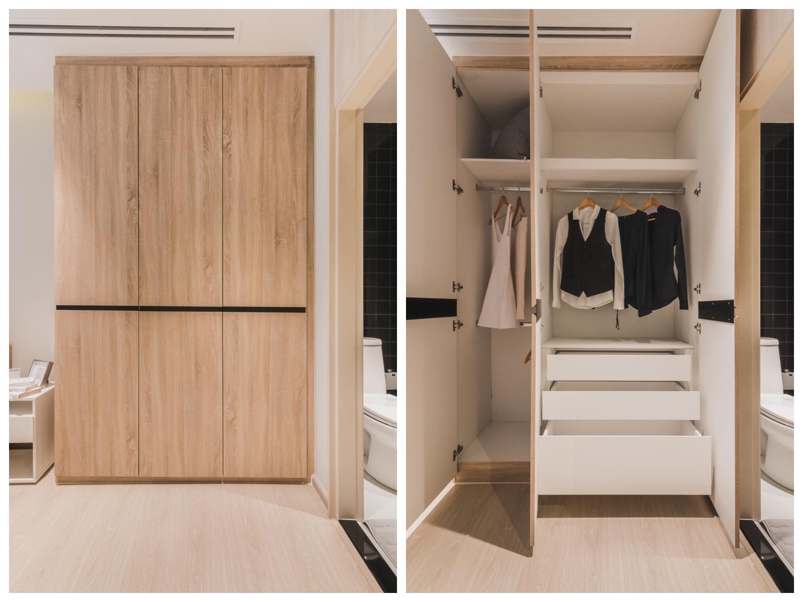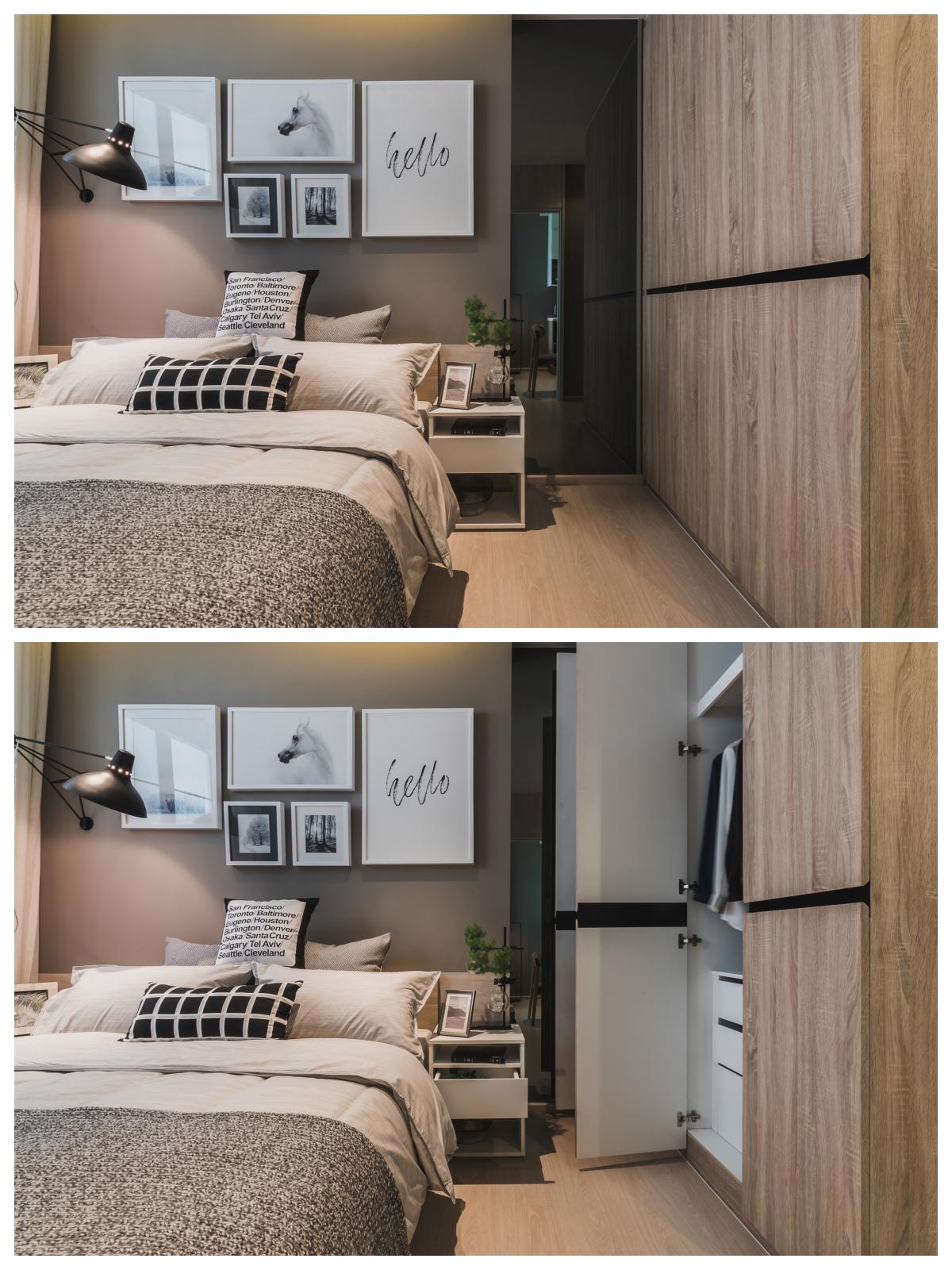 และพอเข้ามาในห้องนอนจะเจอ ตู้เสื้อผ้า ก่อนเป็นอันดับแรก โดยขวามือเป็นทางเข้าห้องน้ำ ส่วนซ้ายมือจะเป็นที่ตั้งเตียงนอน ซึ่งช่วยในการหลบเลี่ยงสายตาจากบุคคลภายนอกได้