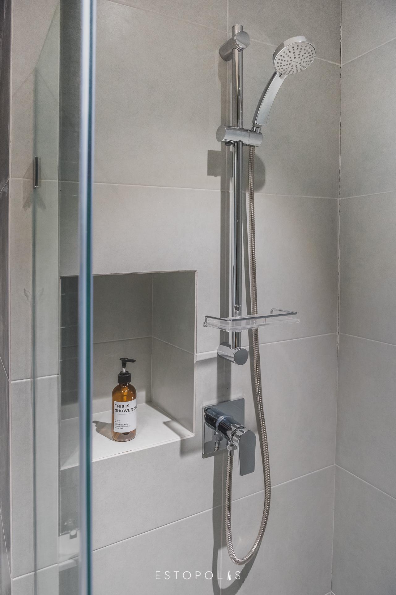 ติดชุดฝักบัว และทำการ Drop wall ให้วางของใช้ได้