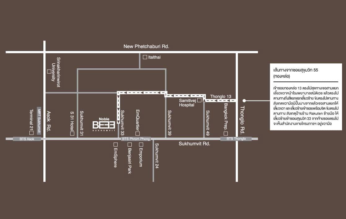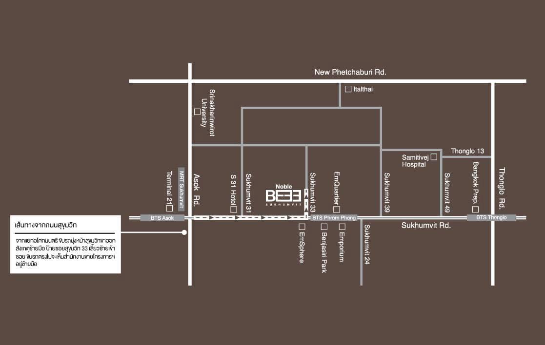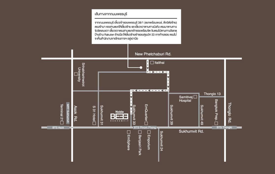เส้นทางเข้าสู่โครงการ Noble BE 33 Sukhumvit (โนเบิล บีเทอร์ตี้ทรี สุขุมวิท)