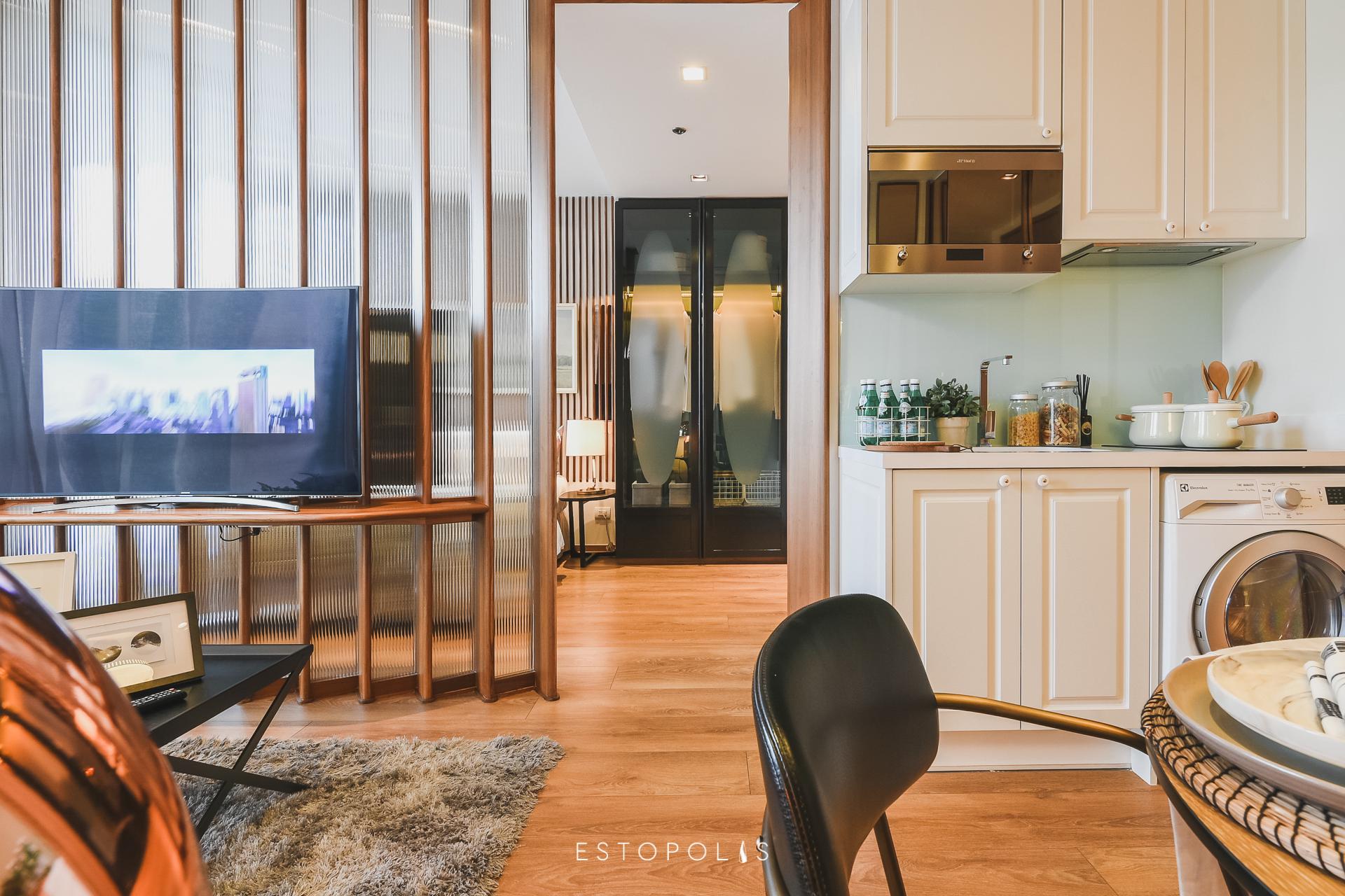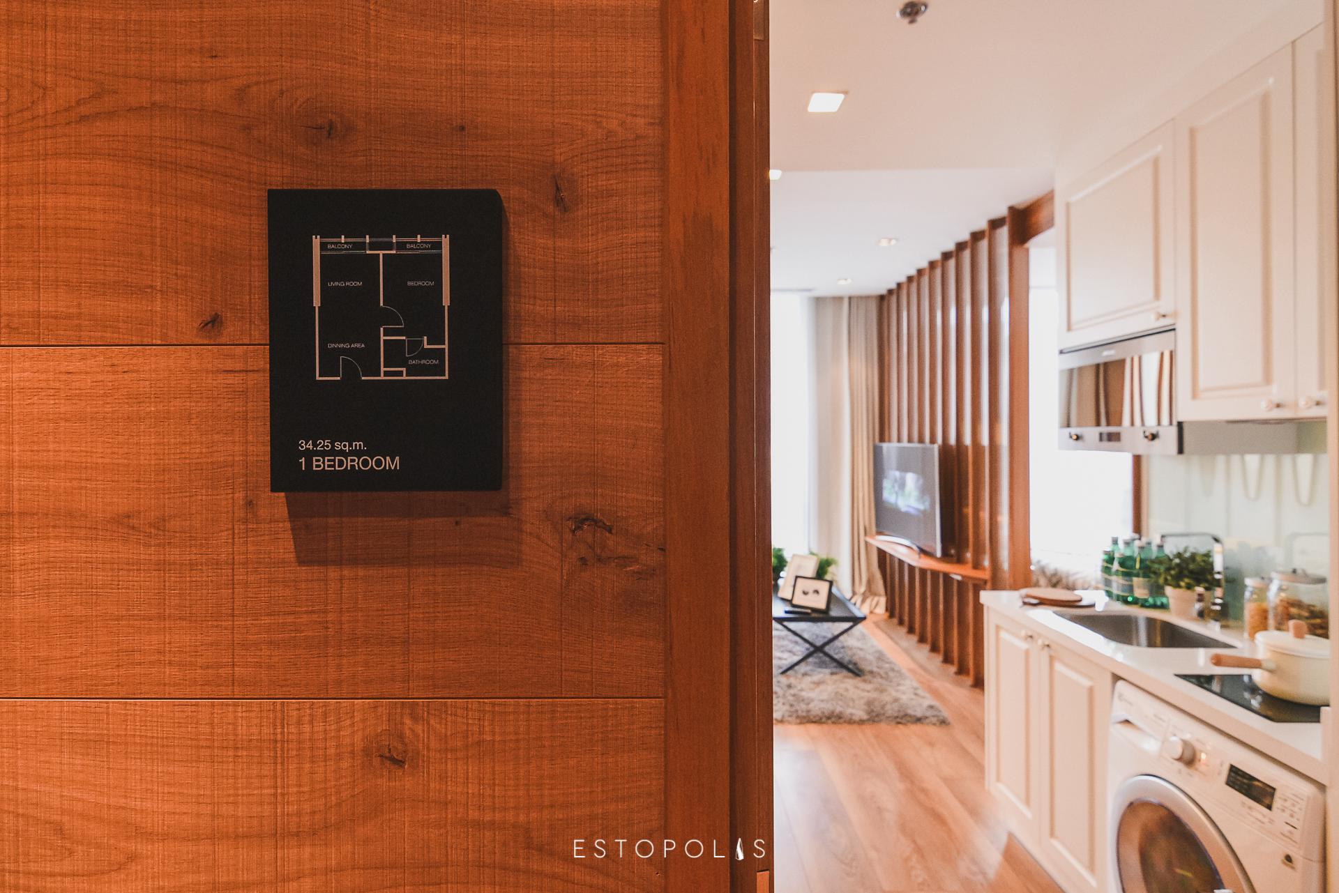 ห้องตัวอย่าง 1 ห้องนอน ขนาดพื้นที่ใช้สอย 34.25 ตารางเมตร