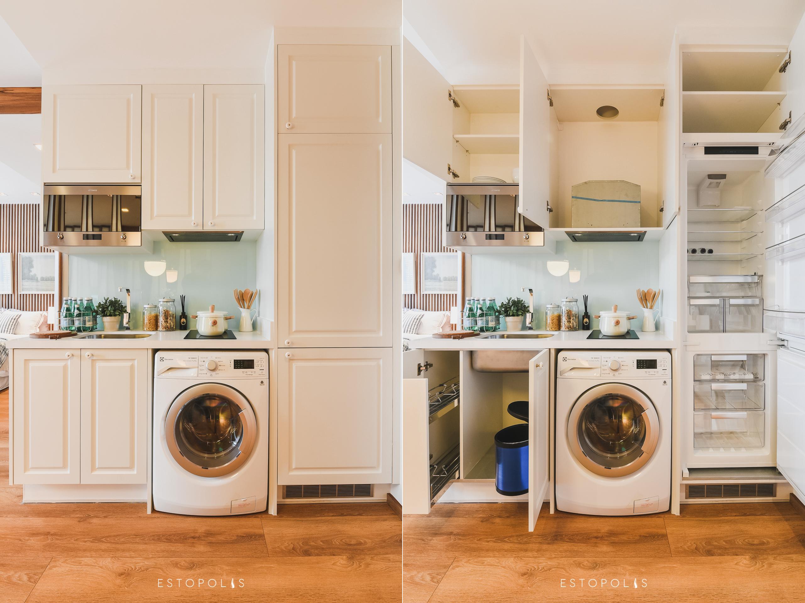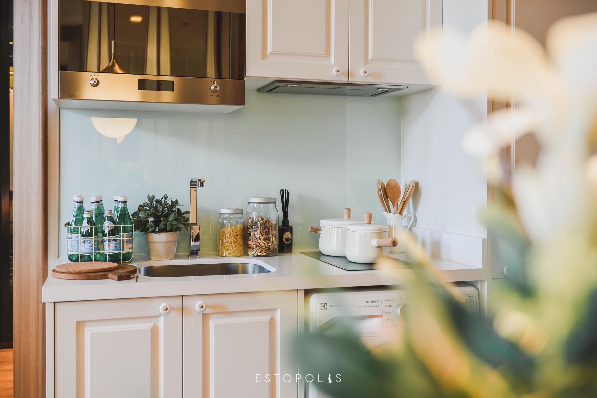 ส่วนด้านล่างเคาน์เตอร์ครัวจะเป็นช่องว่างที่ทาง โครงการ Noble BE 33 Sukhumvit (โนเบิล บีเทอร์ตี้ทรี สุขุมวิท) จัดเตรียมไว้สำหรับใส่เครื่องซักผ้า ถัดมาจึงเป็นโซนของอ่างล้างจาน ซึ่งได้ทางโครงการก็ได้จัดสรรพื้นที่ใต้อ่างให้เรียบร้อยพร้อมใช้งาน โดยบิลท์อินถังขยะและพื้นที่เก็บจานชามไว้ในตัว เรียกว่าทาง Noble BE 33 Sukhumvit (โนเบิล บีเทอร์ตี้ทรี สุขุมวิท) ได้บิลท์อินความสะดวกสบายมาให้คุณแล้ว ทำให้คุณสามารถจัดระเบียบการอยู่อาศัยได้ง่ายขึ้น ในขณะเดียวกันก็ยังคงสภาพห้องเดิมให้เรียบร้อยและสมบูรณ์แบบ แม้ว่าเราจะกำลังใช้งานครัวอยู่ก็ตาม