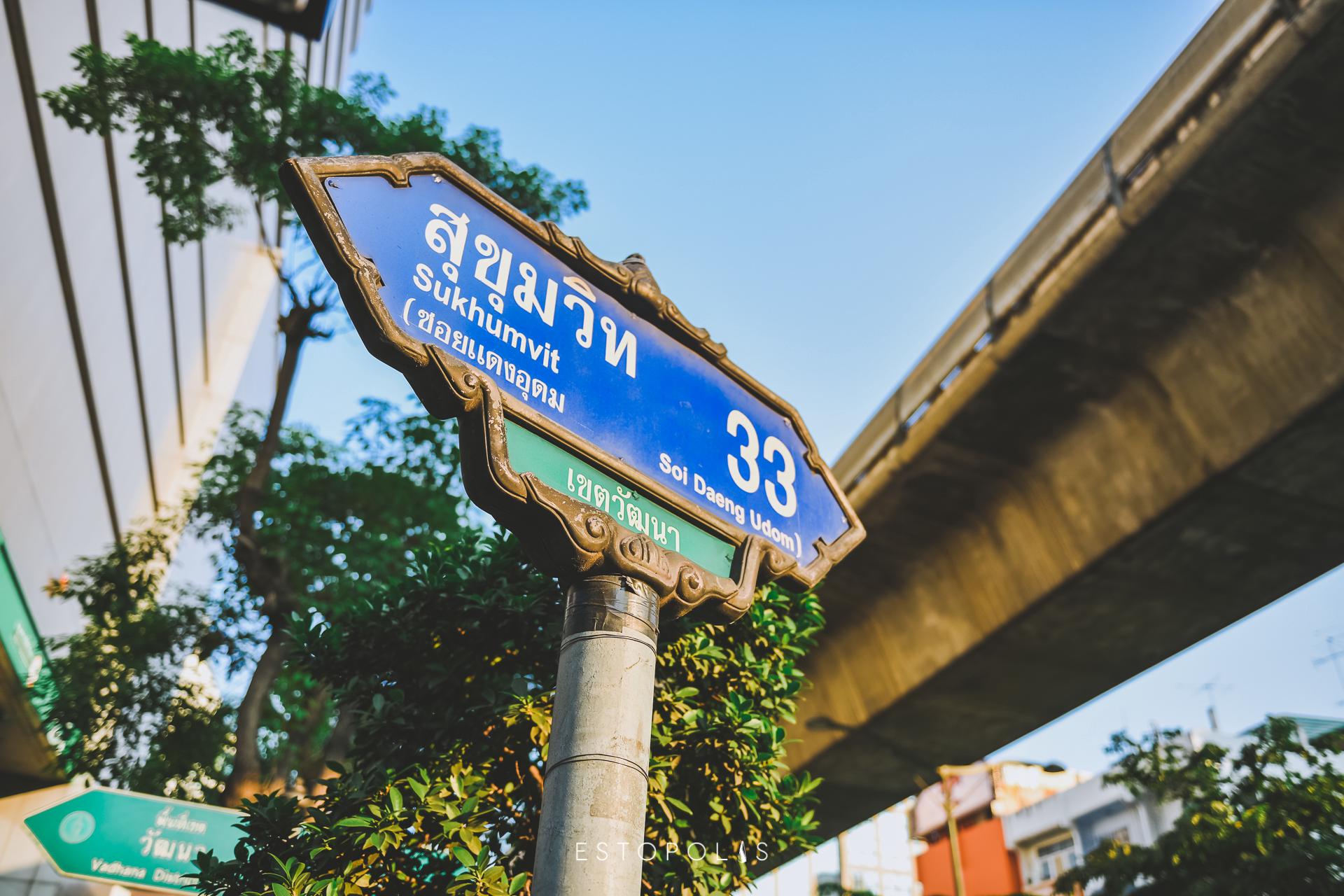 หน้าปากซอยสุขุมวิท 33 นับว่าค่อนข้างพลุกพล่านมากพอสมควร มีคนเดินผ่านมากมายจึงมีทางม้าลายคอยให้บริการ