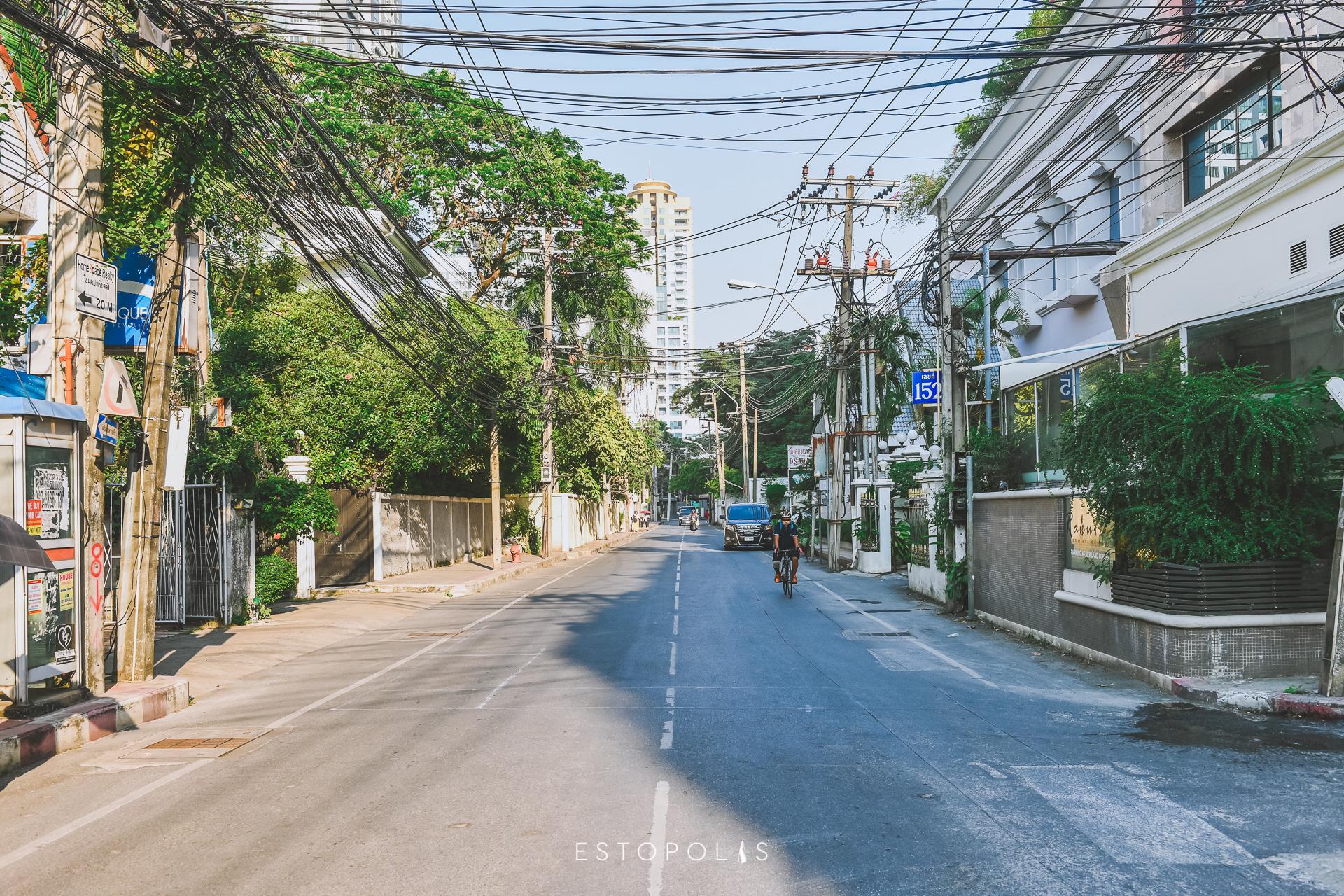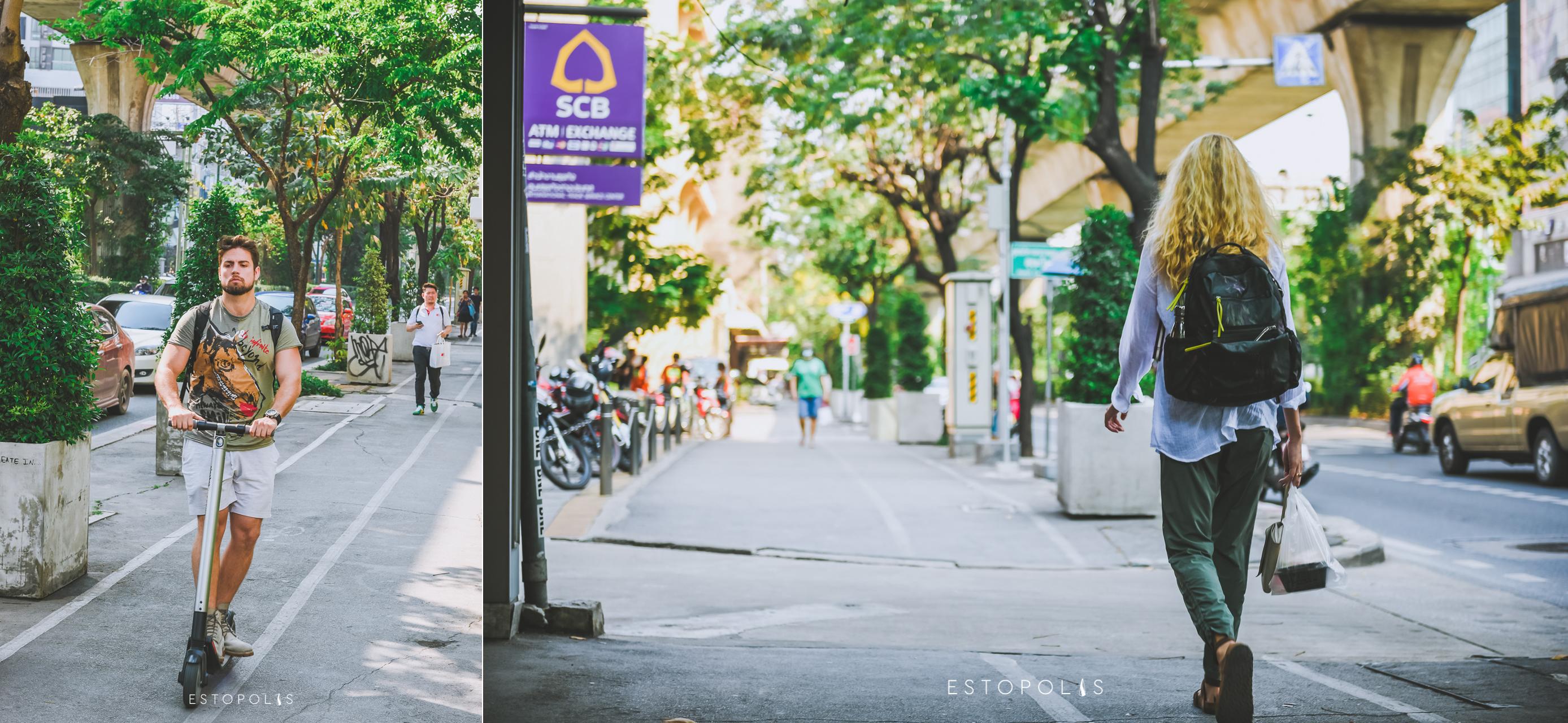 ทางเท้าย่านสุขุมวิทมีเส้นทางสำหรับจักรยานที่ถูกแบ่งเป็นสัดส่วนที่เดินสบาย ปั่นสะดวกจึงมีคนใช้มากมาย