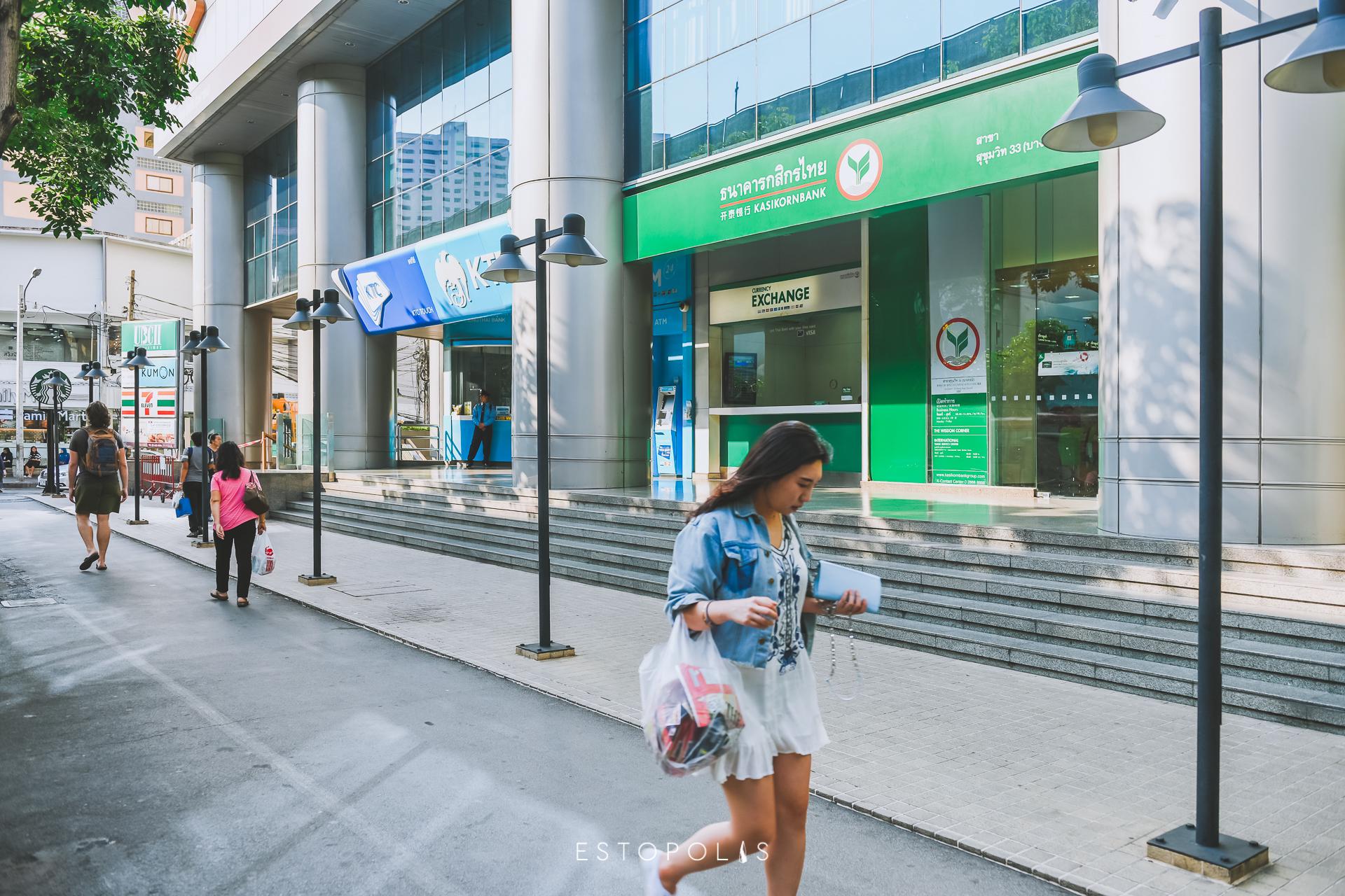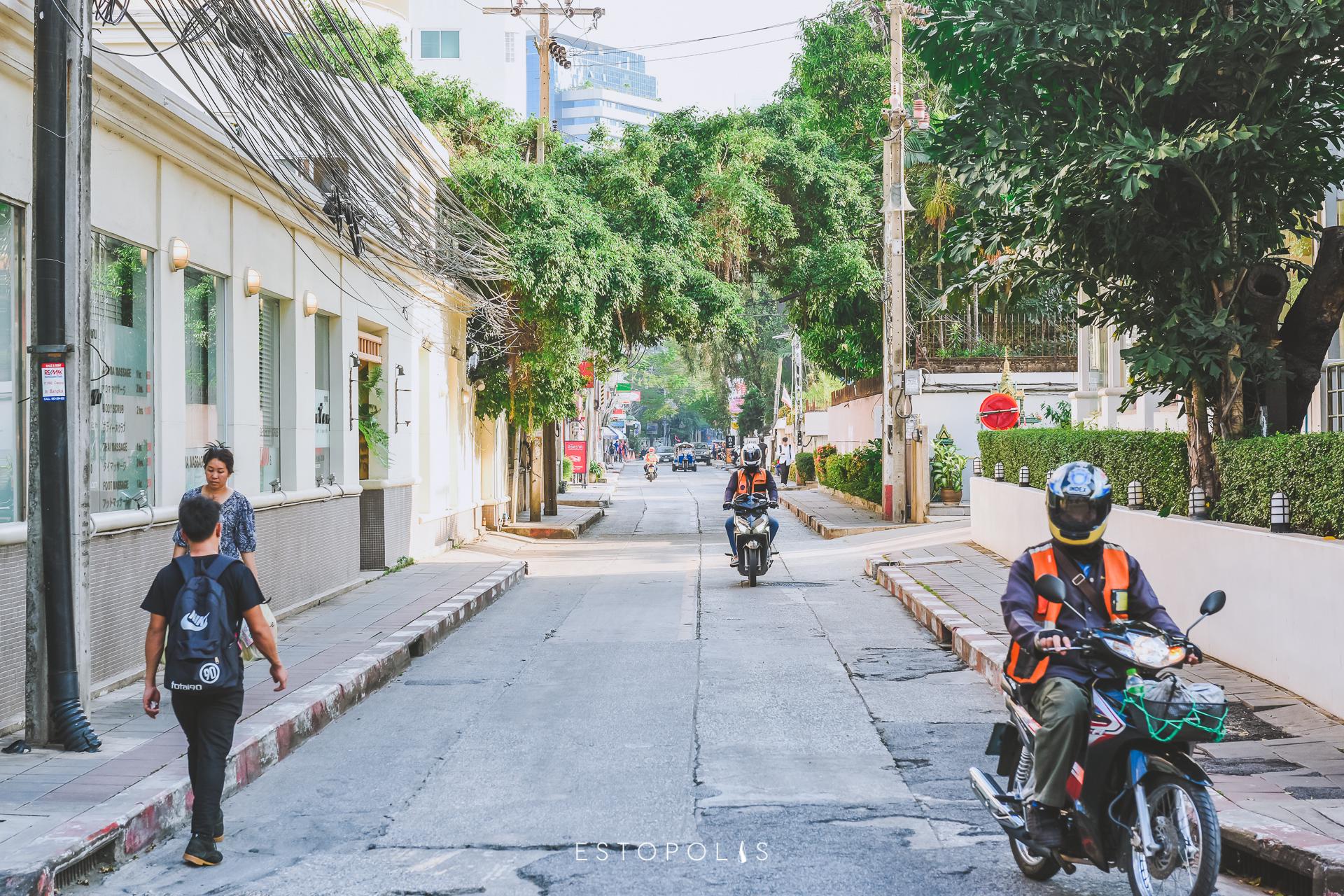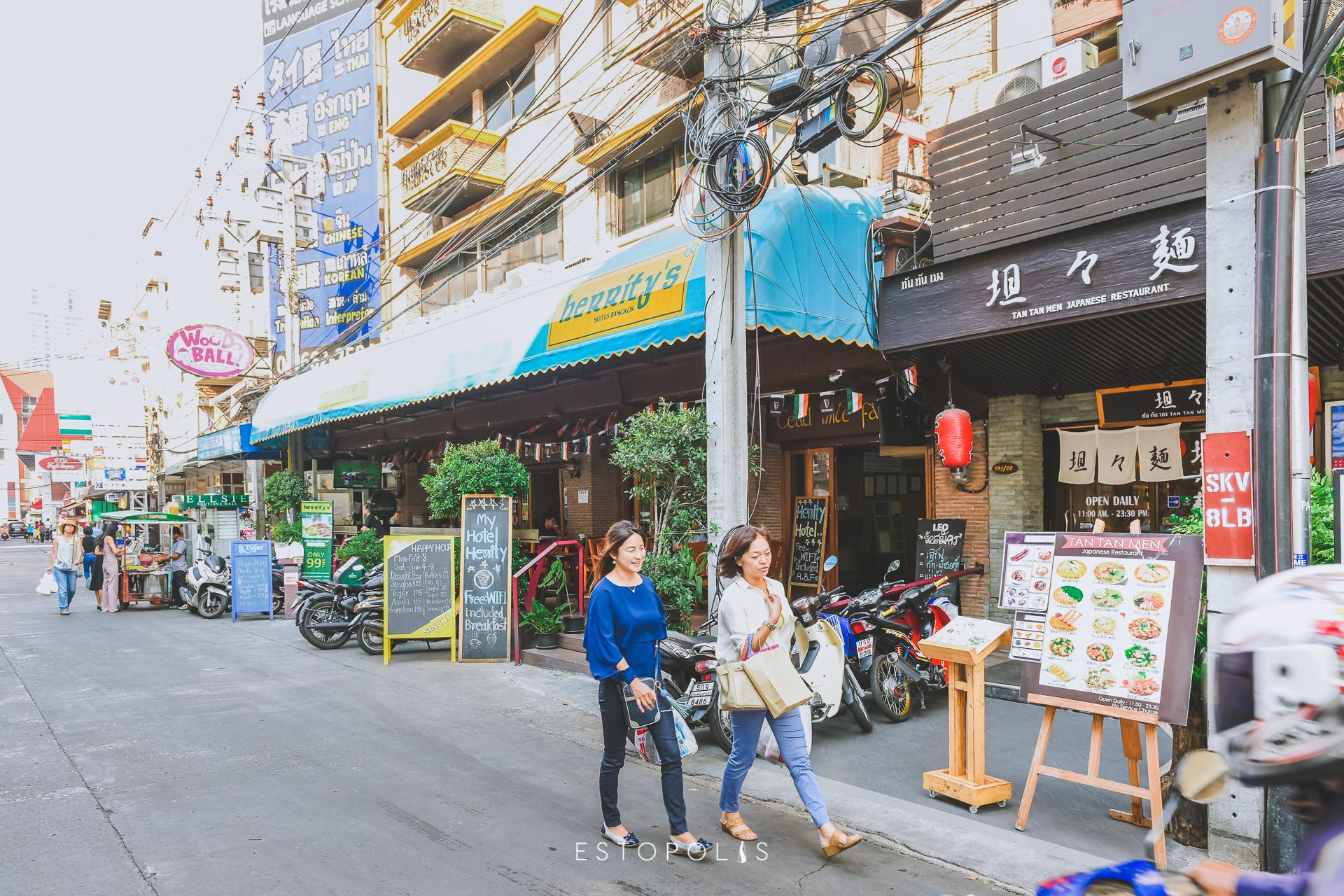 หากเดินทางเท้าในย่านนี้อาจจะเข้าใจว่าเราไม่ได้อยู่ที่ประเทศไทยเพราะทางเท้าในย่านสุขุมวิทกว้างและเต็มไปด้วยชาวต่างชาติ กระทั่งร้านอาหารก็เป็นร้านสไตล์ต่างชาติเช่นกัน พร้อมกับร่มไม้ตลอดแนวสองข้างทาง นับเป็นทางเท้าที่บรรยากาศดีทีเดียว