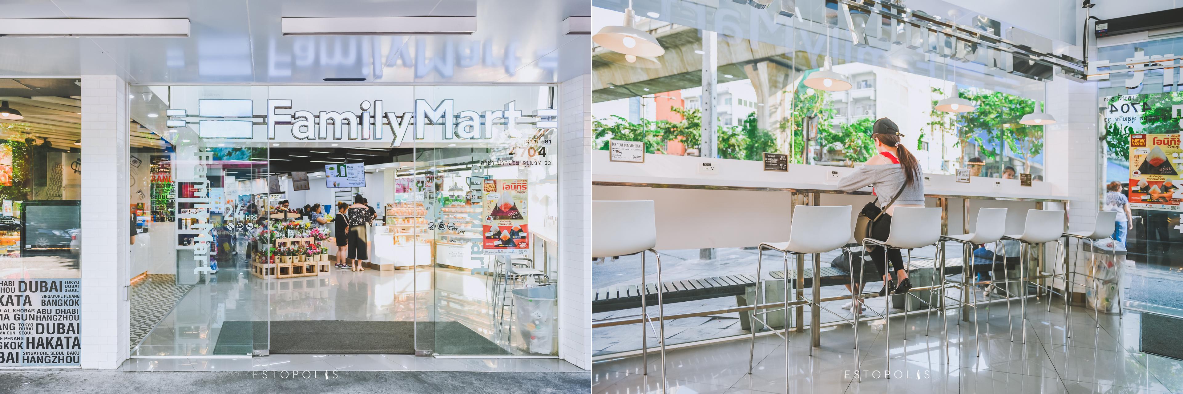 อีกด้านหนึ่งของปากซอยเป็นร้านสะดวกซื้อ Family Mart ที่มีการปรับปรุงเพิ่มพื้นที่นั่งเล่นกลายเป็นคาเฟ่เล็กๆ