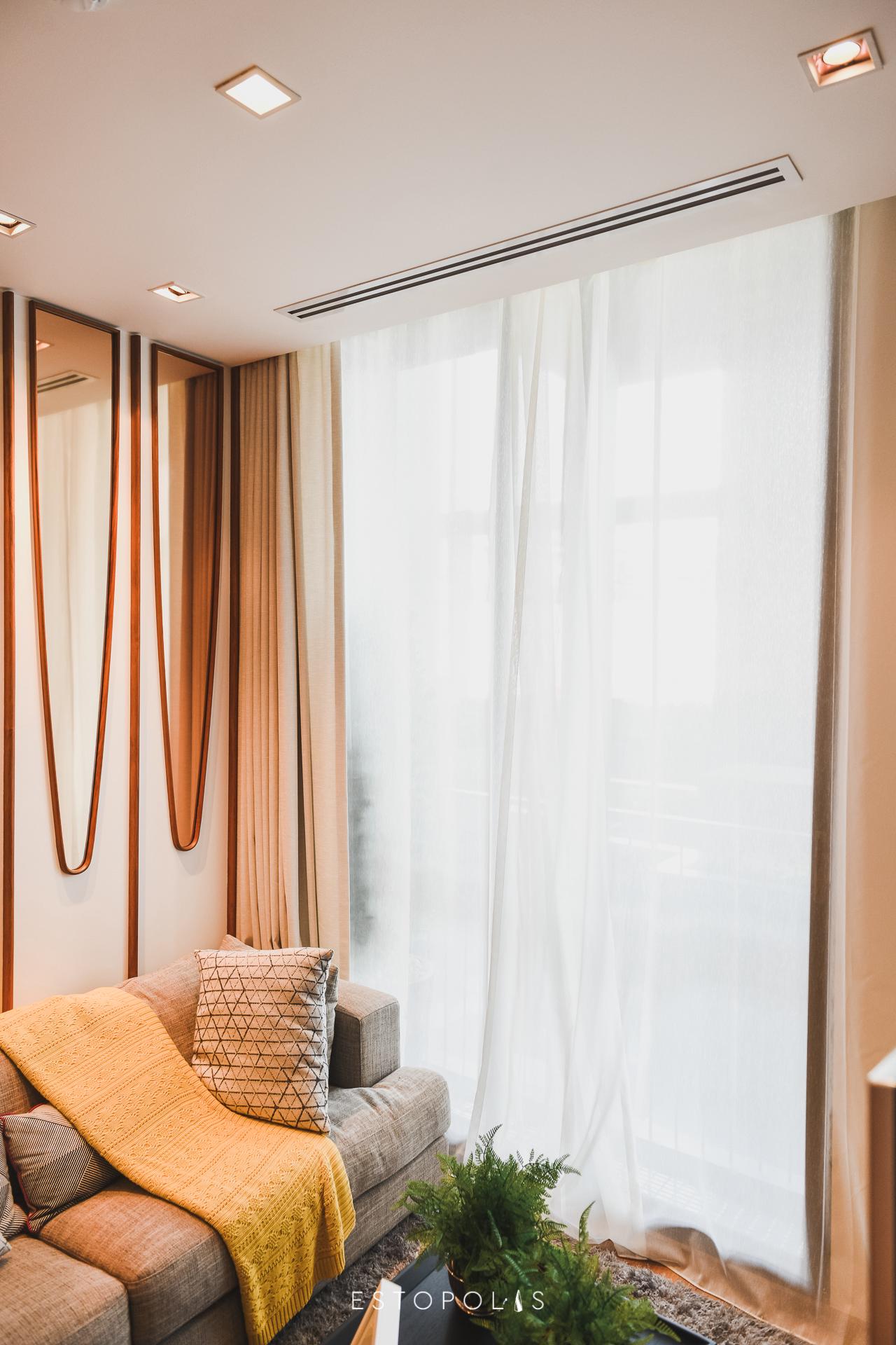 หรือวันไหนอยากเปลี่ยนบรรยากาศมาเปิดผ้าม่านชมวิวเมืองสวยๆ ของย่านพร้อมพงษ์ มองเห็นสวนเบญจสิริผ่านทางหน้าต่างระเบียง ที่ทางโครงการยกรางแขวนผ้าม่านขึ้นสูง 2.95 เมตร เพื่อไม่ให้บดบังทัศนวิสัย จึงไม่แปลกที่เราไม่ค่อยจะอยากออกไปไหนช่วงวันหยุด