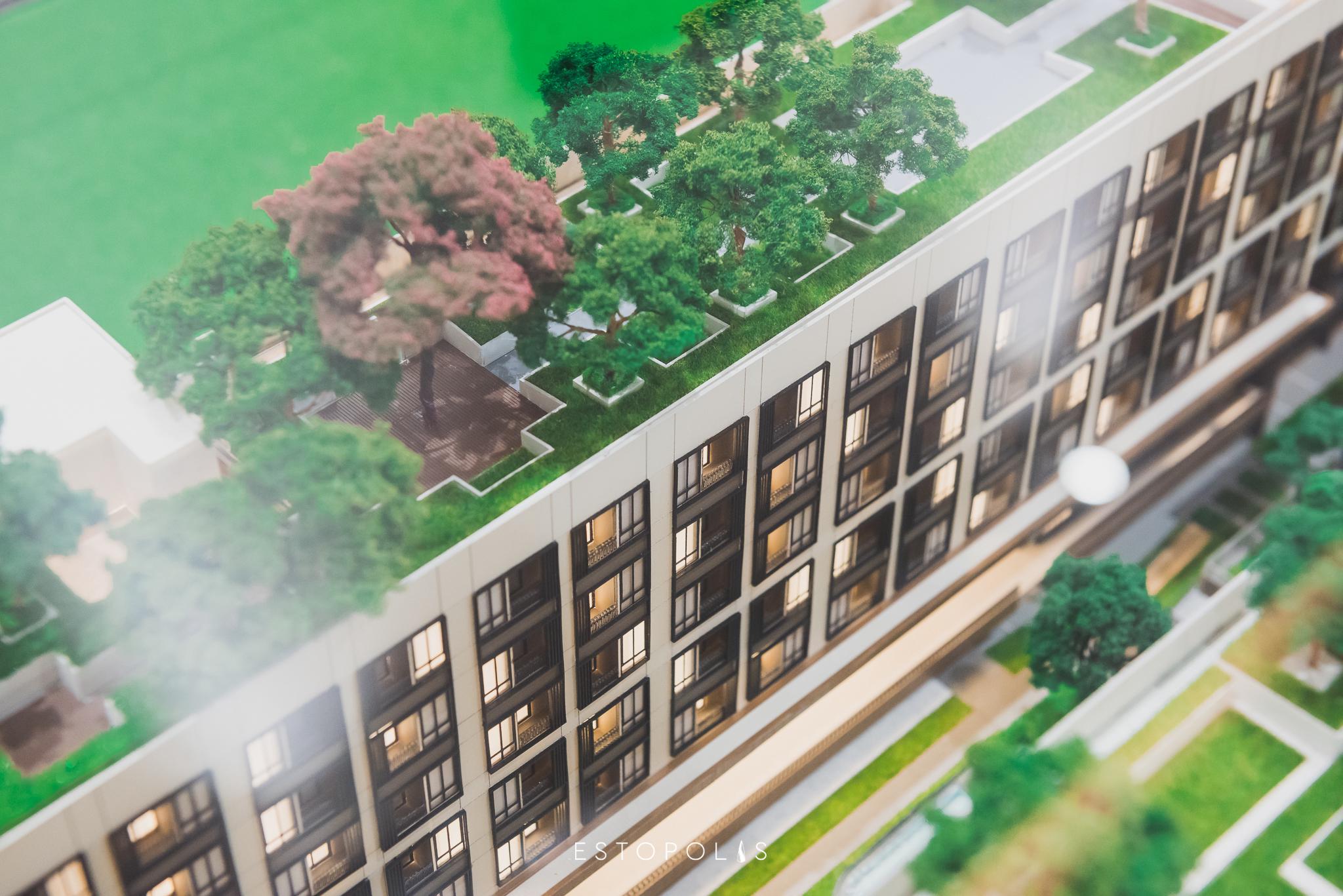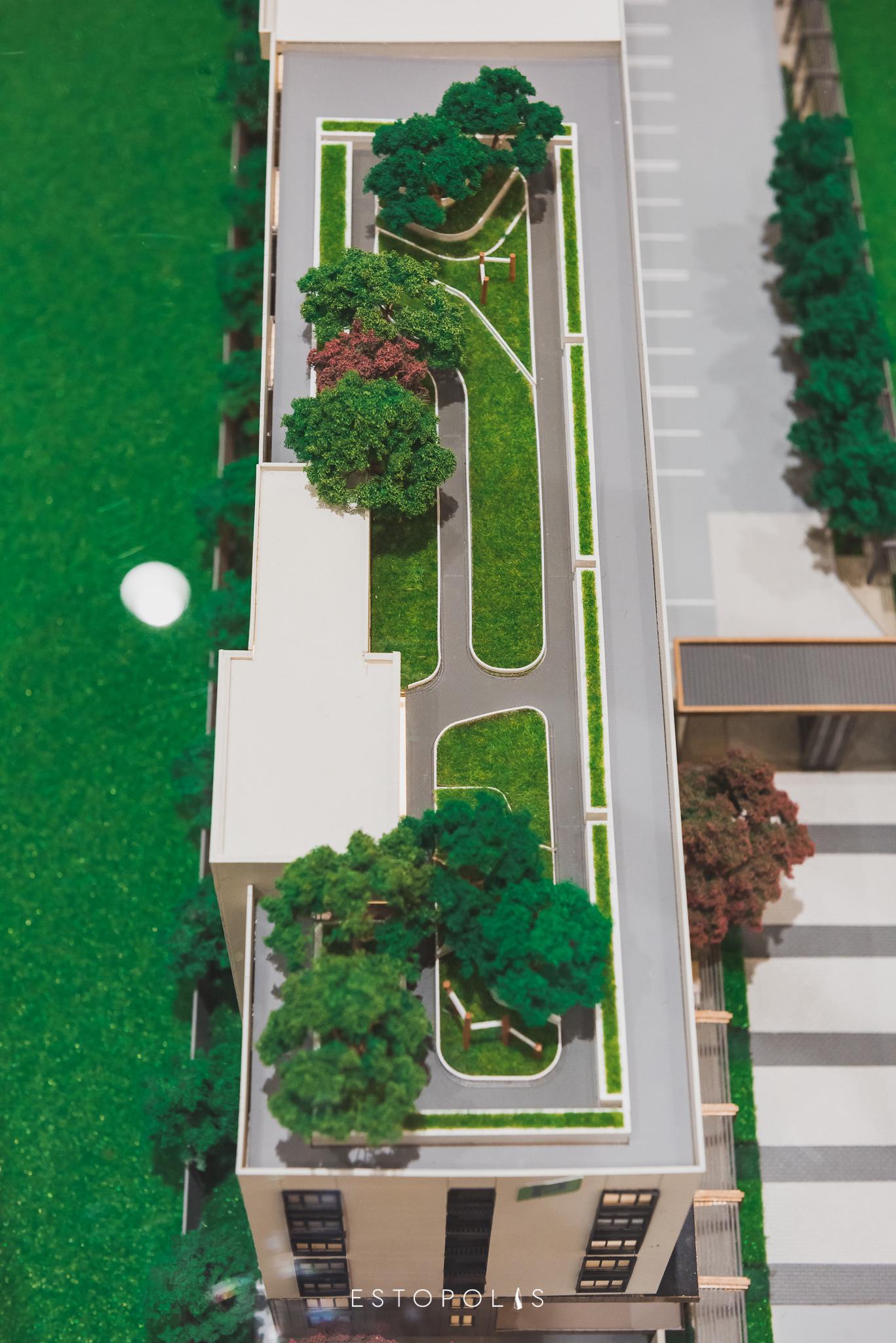 ขึ้นมาบนชั้นดาดฟ้าของอาคาร A จะมีสวนสีเขียวที่จัดเป็นพื้นที่ Active space ให้ผู้อาศัยสามารถขึ้นมาผ่อนคลายรับลมกันได้