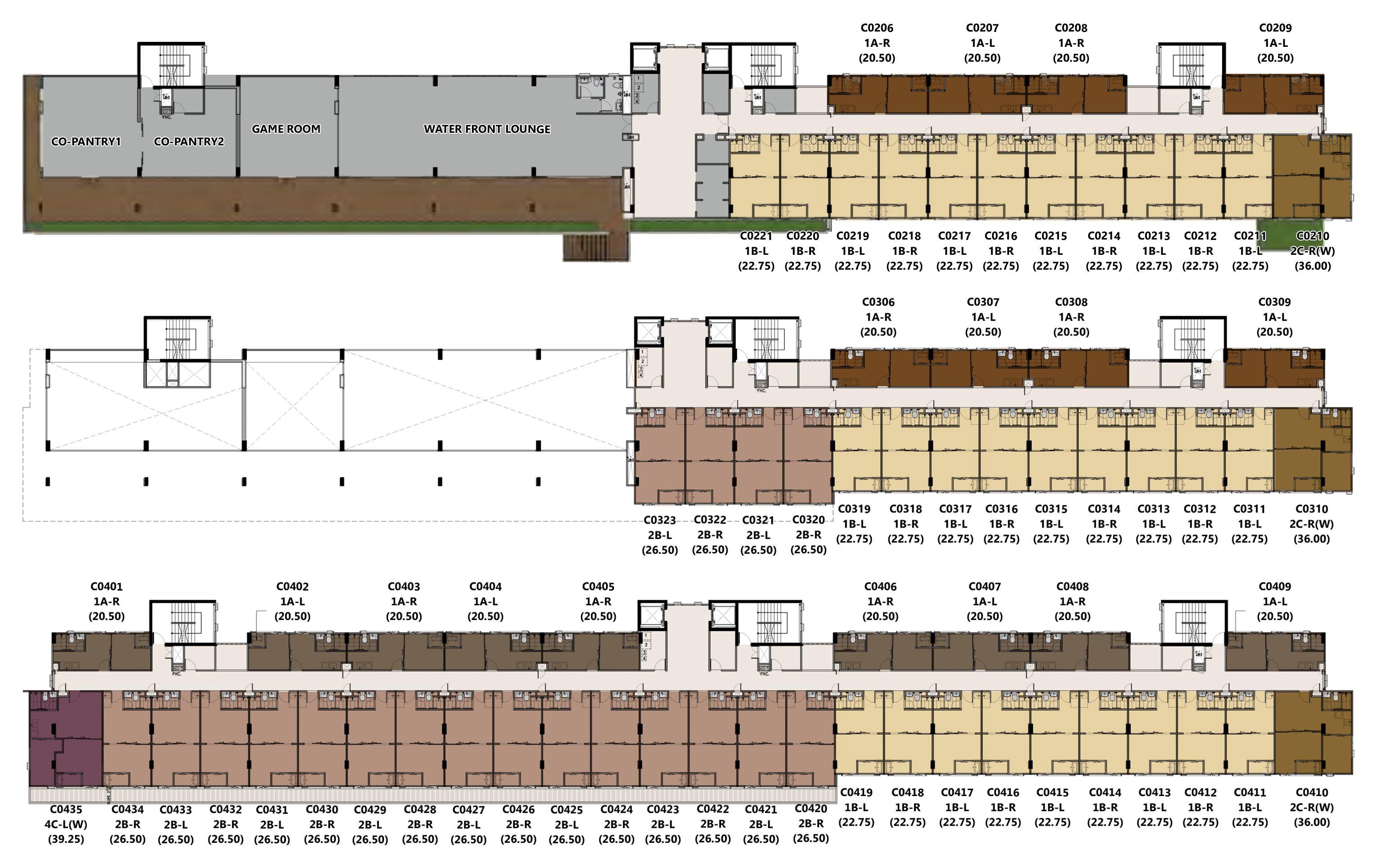 - อาคาร C เป็นอาคารที่เหมาะสำหรับคนที่ชื่นชอบกิจกรรมการสังสรรค์ เพราะมีการจัดพื้นที่ส่วนกลางรองรับไว้แล้ว เช่น Water front lounge ที่รองรับการนั่งเล่นหน้าสระว่ายน้ำในอารมณ์แบบ Semi - outdoor, Game room ห้องกิจกรรมเพื่อความสนุกสนาน หรือ Co - kitchen สำหรับคนที่ชอบการทำอาหาร เป็นต้น