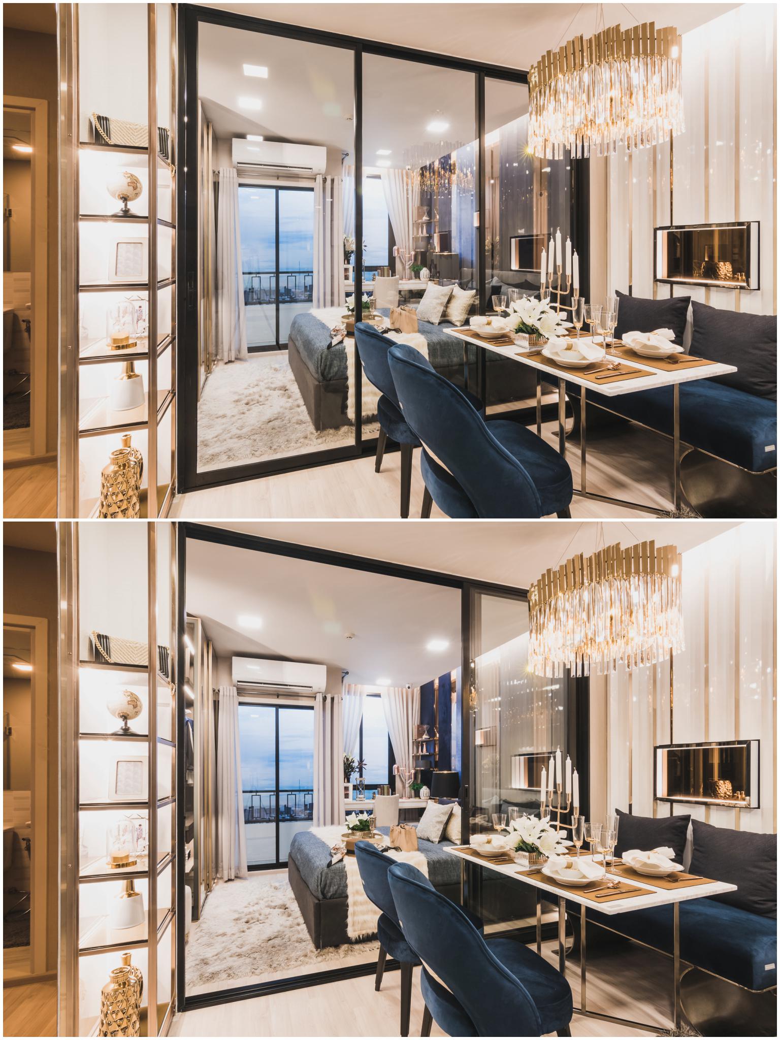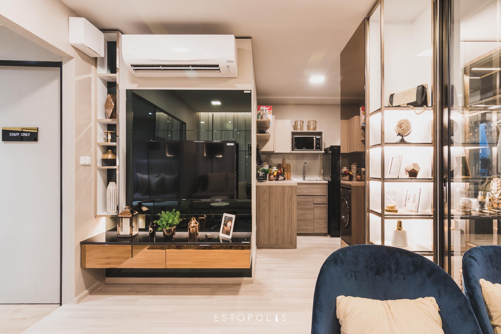 จัดสรรพื้นที่ขนาด 31.25 ตารางเมตรให้สามารถใช้ชีวิตอย่างเป็นสัดส่วนมากขึ้นด้วยแบบห้องพัก 1 ห้องนอนที่แยกส่วนครัวเป็นระบบปิด พร้อมกับโต๊ะทานอาหารที่ขยับออกจากห้องนั่งเล่นไปอยู่ใกล้พื้นที่ครัว และไม่ลืมที่จะสร้างพื้นที่พักผ่อนให้มีความเป็นส่วนตัวมากขึ้นด้วยการกั้นห้องนอนแยกออกไปต่างหาก