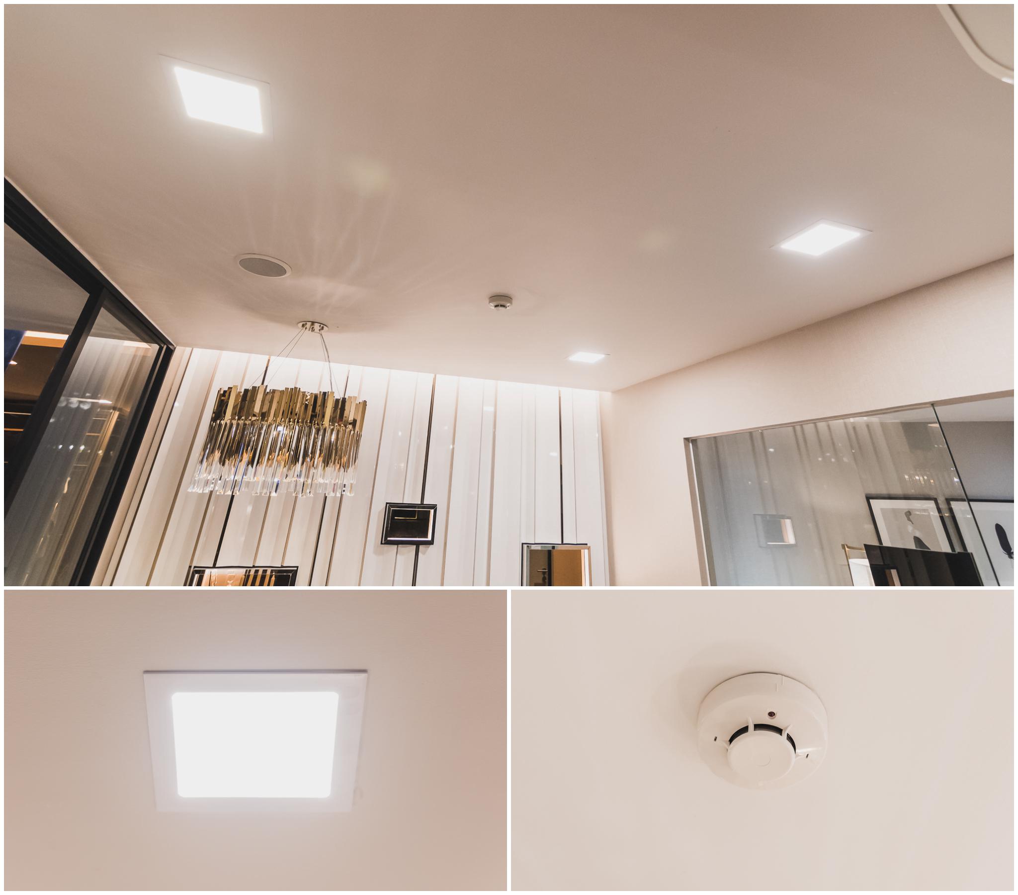 โคมไฟของโครงการ พลัมคอนโด สะพานใหม่ สเตชั่น (Plumcondo Saphanmai Station) จะติดตั้งมาให้แบบดาวน์ไลท์ทรงสี่เหลี่ยม ส่วนข้างๆ กันก็จะมีสัญญาณตรวจจับควันไฟภายในห้องนั่งเล่น เพื่อความปลอดภัยในการพักอาศัย