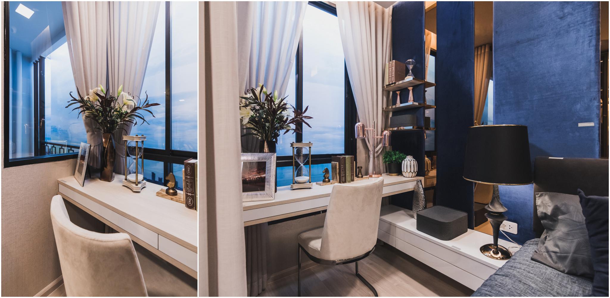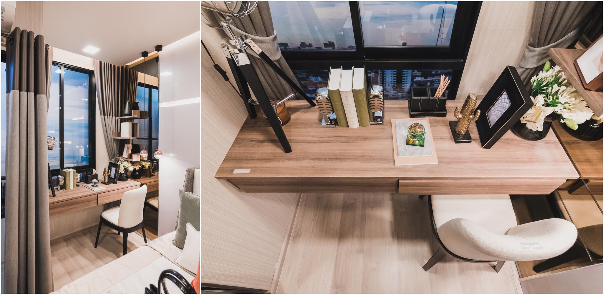 เติมเต็มความฝันและทบทวนเป้าหมายของชีวิตบนพื้นที่ทำงานที่ทางโครงการจัดวาง โต๊ะทำงาน แบบบิลล์อินไว้ใกล้กับช่องแสงหลักอย่างหน้าต่างบานฟิกซ์ผสมบานกระทุ้งที่สามารถเปิดระบายอากาศได้