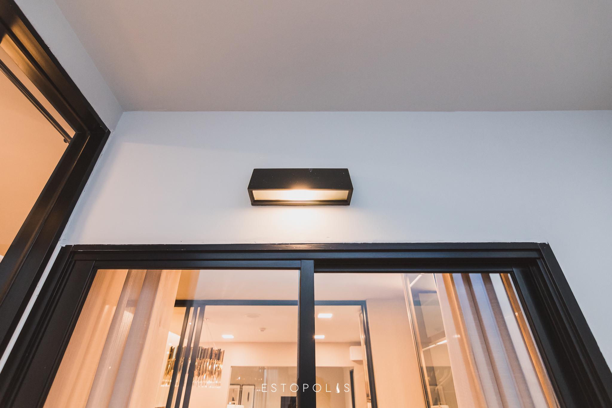 บริเวณระเบียงยังมีการติดตั้งไฟเพื่อให้แสงสว่าง เพียงให้พอมองเห็นเป็นสี Warm White ดูนวลตา