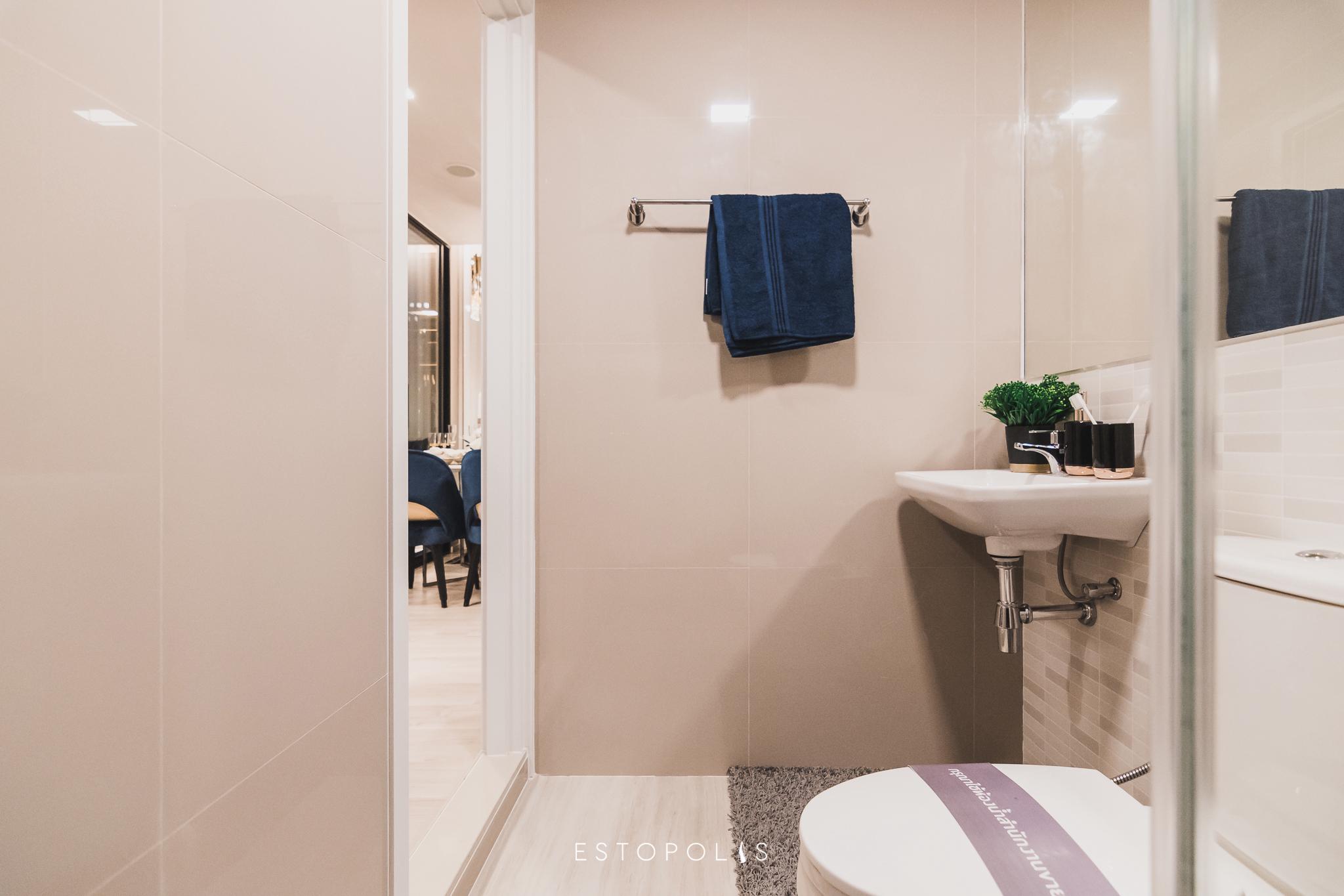 ติดกับพื้นที่ห้องครัวทางโครงการ พลัมคอนโด สะพานใหม่ สเตชั่น (Plumcondo Saphanmai Station) จัดให้เป็นพื้นที่งานระบบอีกส่วนนั่นก็คือ ‘ห้องน้ำ’
