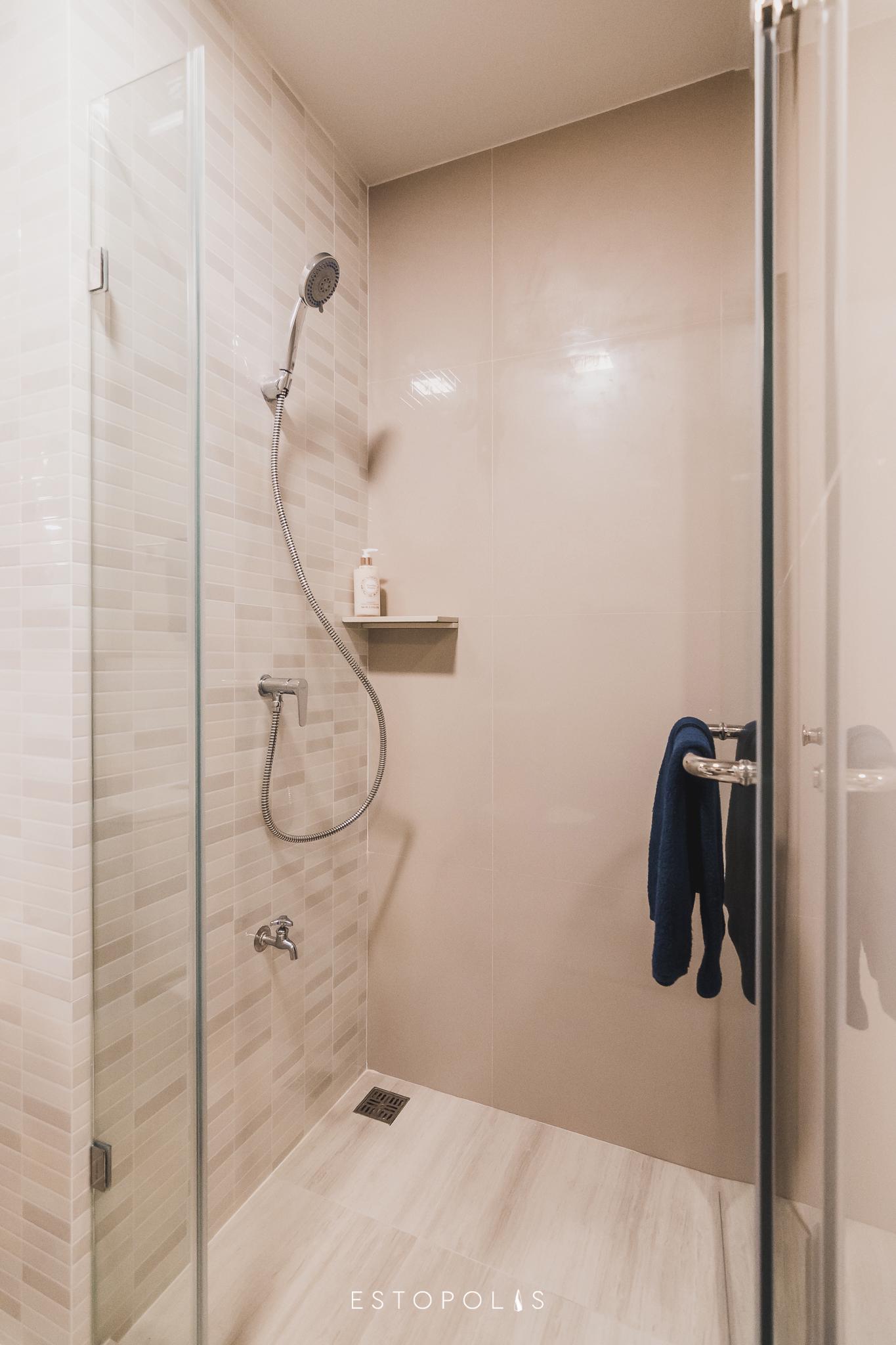 ในฝั่งของส่วนเปียกจะไม่ได้ติดกระจกกั้นส่วนเปียก - ส่วนแห้งมาให้ ผู้พักอาศัยจึงสามารถติดตั้งเองได้ตามแบบที่ชอบ นอกจากนี้บริเวณกำแพงติดกับฝักบัวทางโครงการยังเว้นพื้นที่ว่างไว้ให้ติดเครื่องทำน้ำอุ่นเพิ่มเติมได้ด้วย