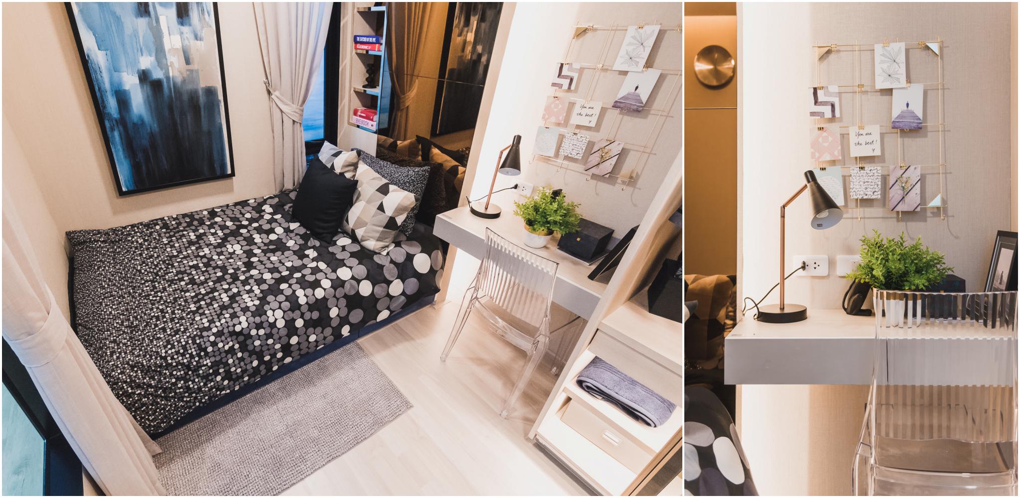 โดยภายในห้องนอนสามารถแบ่งออกเป็น 3 ส่วน ได้แก่ พื้นที่แต่งตัว ซึ่งทางโครงการจัดชุดโต๊ะเครื่องแป้งและตู้เสื้อผ้าแบบบิลล์อินมาให้ครบ