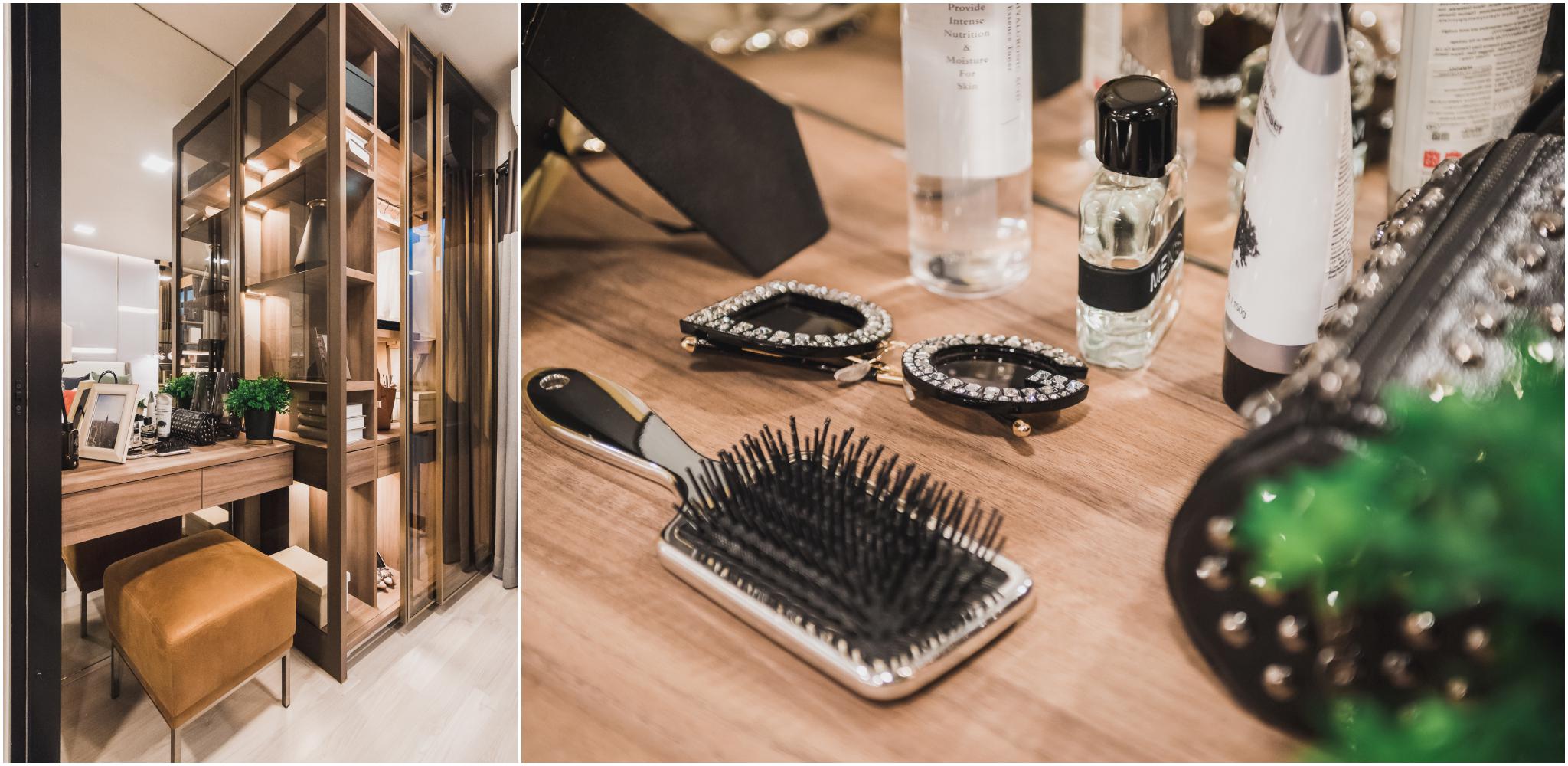 เมื่อเข้ามาภายในห้องนอนแล้วทางซ้ายมือจะเป็นส่วนของโต๊ะเครื่องแป้งที่ทางโครงการ พลัมคอนโด สะพานใหม่ สเตชั่น (Plumcondo Saphanmai Station) จัดเตรียมเป็นเฟอร์นิเจอร์ลอยตัวไว้ให้