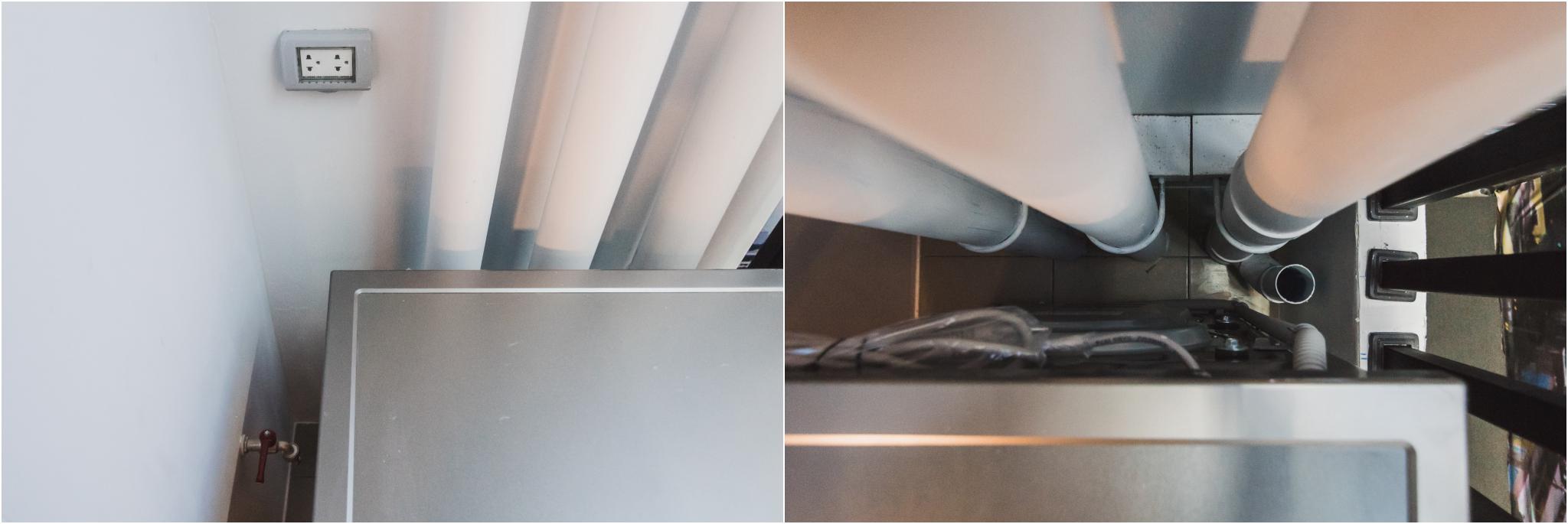 ส่วนด้านล่างจะเว้นไว้สำหรับวางเครื่องซักผ้าพร้อมติดปลั๊กไฟและท่อระบายน้ำไว้ให้ใช้งานเรียบร้อยแล้ว