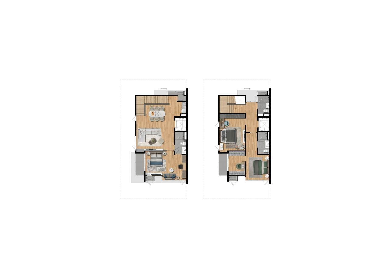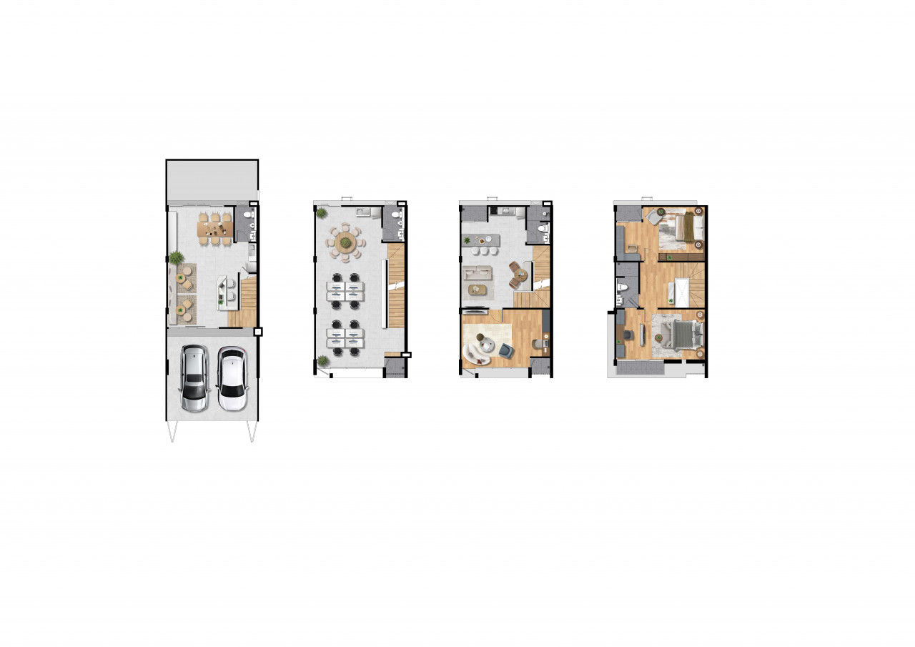 สำหรับแบบบ้านจะมีด้วยกัน 2 แบบ คือ แบบบ้าน Home Office 4-Storey จะเป็นโฮมออฟฟิศ 4 ชั้น พื้นที่ใช้สอยตั้งแต่ 240 - 275 ตร.ม. หน้ากว้างตั้งแต่ 5 - 6 เมตร โดยชั้นล่างจะเป็นพื้นที่จอดรถ 2 คัน ภายในจะเป็นพื้นที่ต้อนรับ เมื่อขึ้นมาชั้น 2 จะเป็นพื้นที่ทำงาน จัดสรรเป็นพื้นที่ประชุมหรือโต๊ะทำงานได้อย่างลงตัว ส่วนชั้น 3 สามารถจัดเป็นพื้นที่พักผ่อนทั้งทำอาหาร นั่งเล่น หรือจัดกิจกรรมต่างๆ ส่วนชั้นบนสุดจะเป็นพื้นที่ห้องนอนซึ่งมีทั้งหมด 2 ห้อง และห้องน้ำจะมีแยกให้ทุกชั้นด้วย