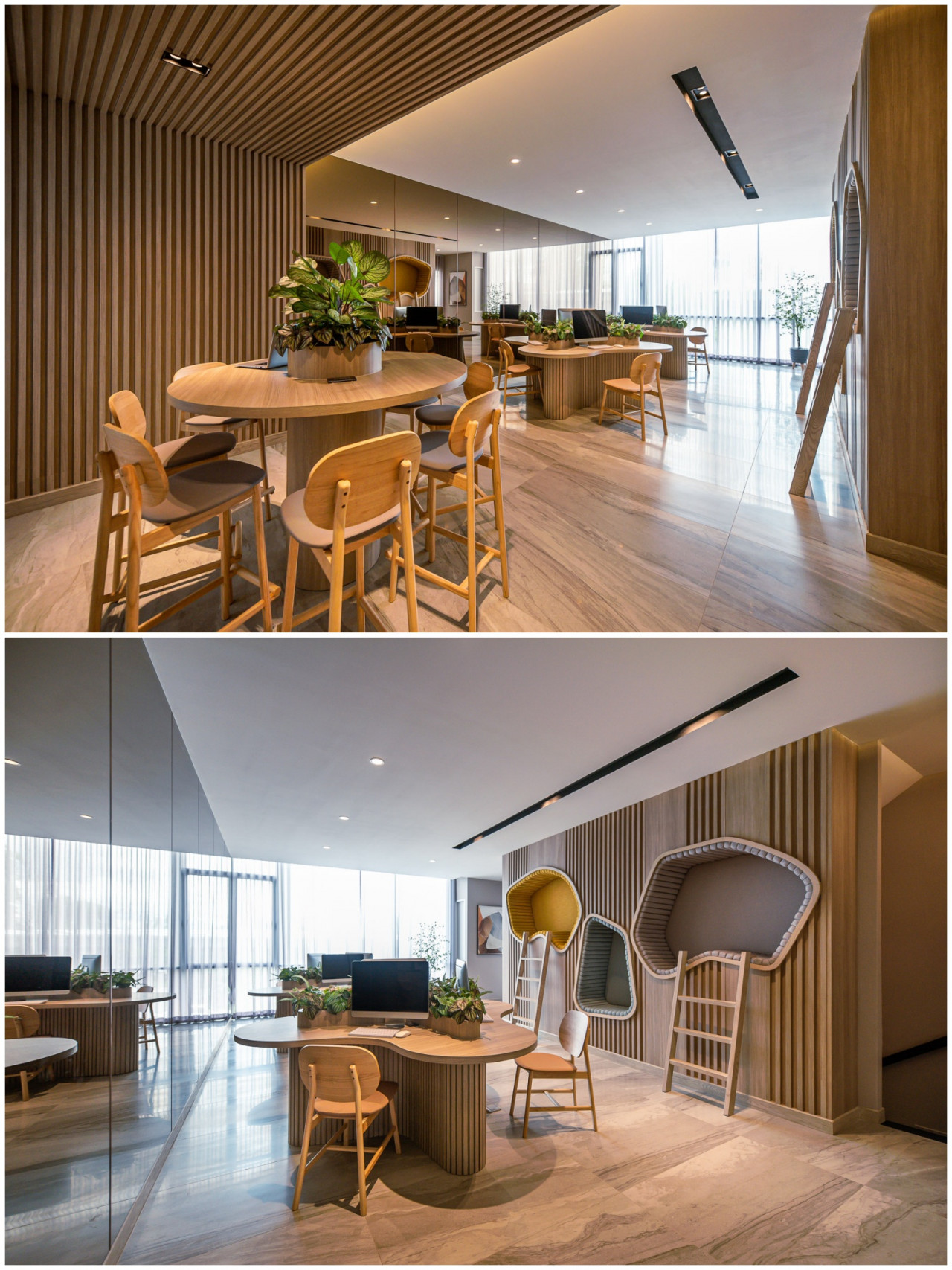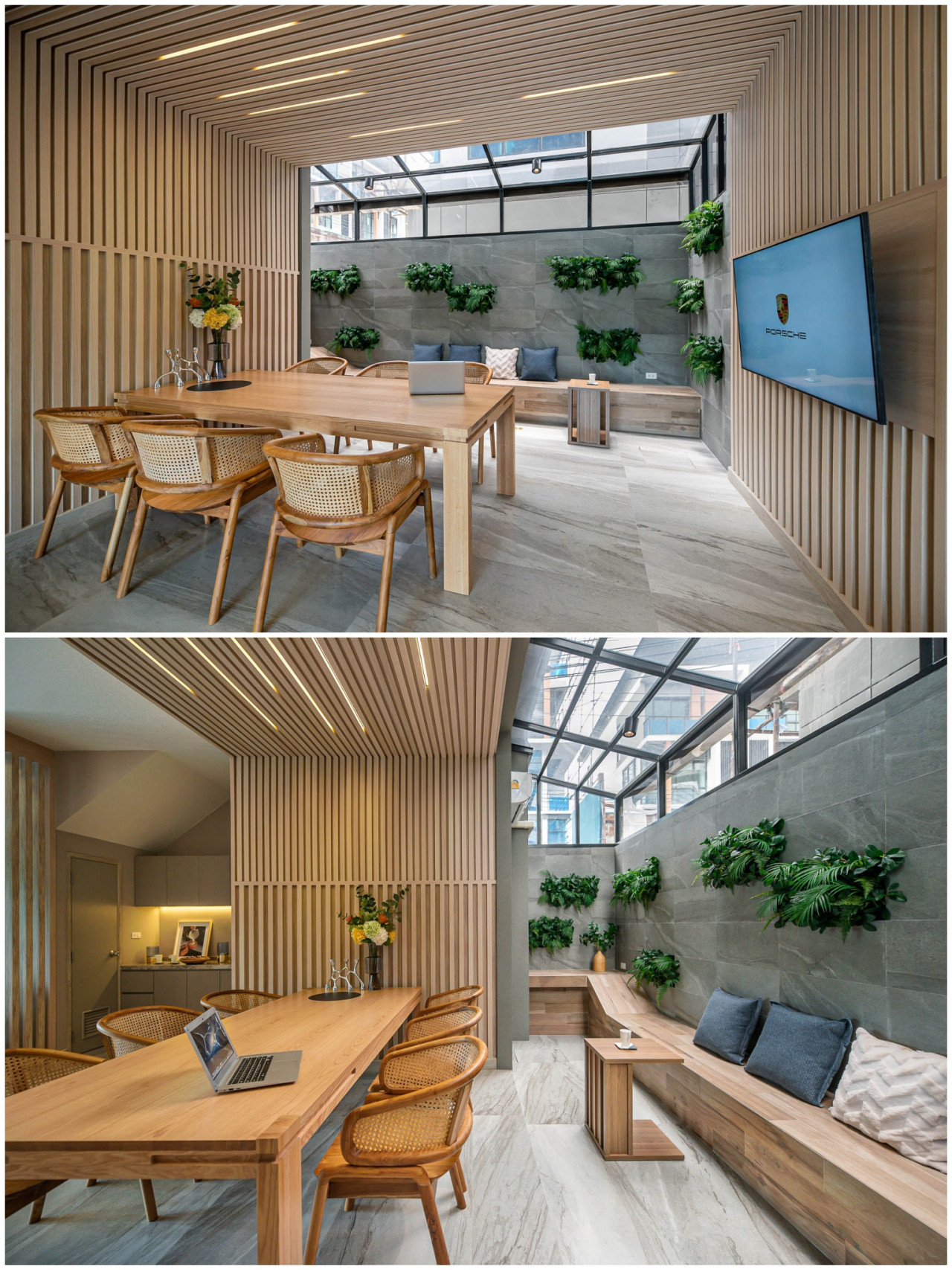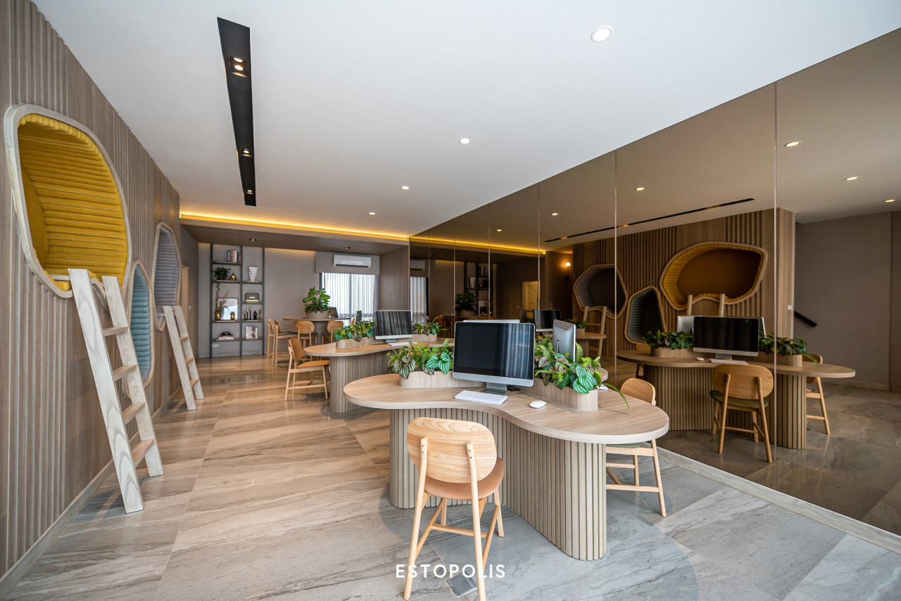 หรือใครที่อยากได้โซนทำงานวิวดี เปลี่ยนบรรยากาศจากการนั่งทำงานบนโต๊ะแบบปกติ บริเวณหน้าต่าง Wide Screen ก็สามารถจัดเป็นโซนเคาน์เตอร์สำหรับทำงานแยกออกมาต่างหาก เพื่อให้คนทำงานได้ลองเปลี่ยนบรรยากาศจากการจ้องแต่หน้าคอมพิวเตอร์ เป็นการชมวิวสวนส่วนกลาง และวิวภายนอกเพิ่มเติมให้รู้สึกผ่อนคลายมากยิ่งขึ้น