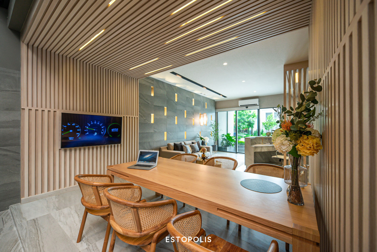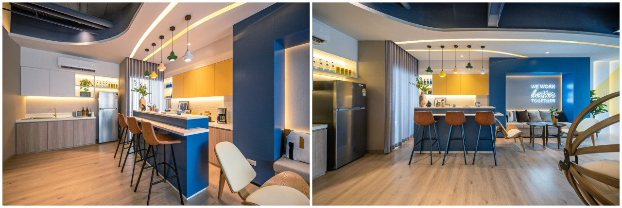 ด้วยพื้นที่กว้างขวางจึงสามารถจัดฟังก์ชันการใช้งานของโฮมออฟฟิศได้หลากหลายแบบ ทั้งการปรับพื้นที่เป็นโซนครัว และ Pantry สำหรับเตรียมอาหารเอาไว้ดื่มกันอย่างเต็มที่ แถมด้านข้างกันยังจัดเป็นโซนนั่งเล่นเอาไว้รองรับการทำกิจกรรมที่หลากหลายได้ด้วย