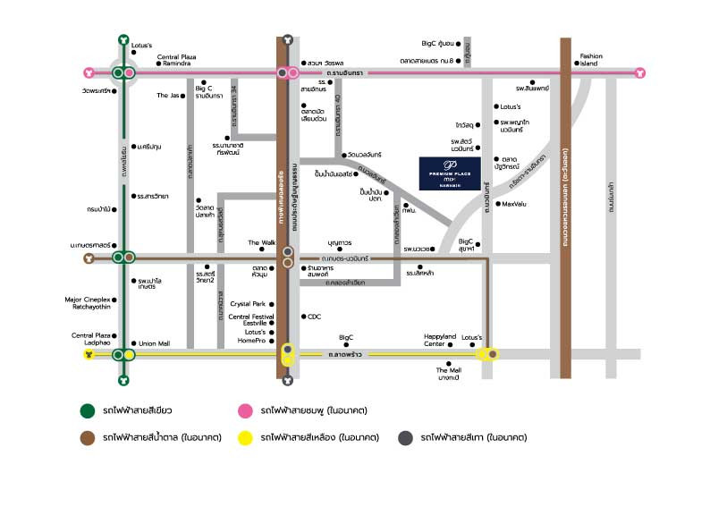 **ช่วงเวลาการเปิดใช้บริการอาจมีการเปลี่ยนแปลง ติดตามข้อมูลได้ที่ www.mrta-pinkline.com ทำให้ทำเลของโครงการมีโอกาสในการเดินทางสู่ทั้งฝั่งตัวเมืองและนอกเมืองได้อย่างสะดวก นอกจากนี้ ยังมี ‘รถไฟฟ้าสายสีเทา’ (วัชรพล-ทองหล่อ และ พระโขนง-ท่าพระ) ที่ในอนาคตจะเข้ามาทำให้ทำเลบริเวณนี้เจริญและครึกครื้นมากขึ้นอีกด้วย