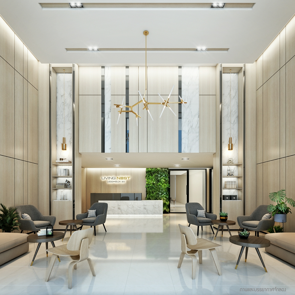 - HIGH CEILING LOBBY : Lobby เพดานสูงโปร่ง กับ โถงต้อนรับที่มาพร้อมบริการ Wi-Fi ฟรี ให้ลูกบ้าน สามารถใช้งานอินเทอร์เน็ตในบริเวณนี้ได้