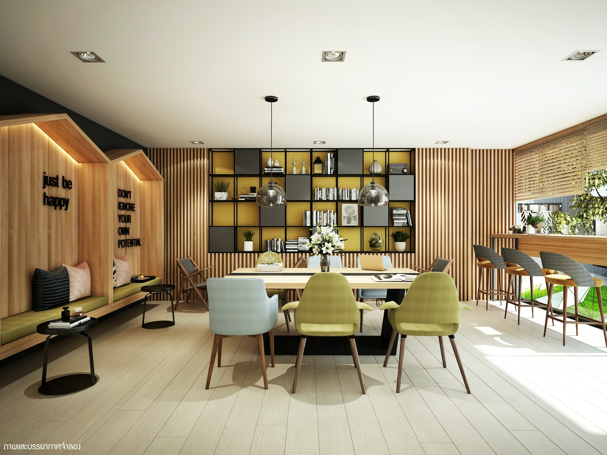 - CO-WORKING SPACE : พื้นที่สำหรับใช้ความคิดของคนทำงาน มาพร้อมกับ Wi-Fi ให้คุณสามารถเชื่อมต่ออินเทอร์เน็ต เพื่อใช้ค้นหาข้อมูลได้อย่างสะดวก ไม่ว่าจะนั่งทำงาน, นั่งประชุม หรือพูดคุยสัมนา ก็สามารถรองรับทุกความต้องการได้เป็นอย่างดี