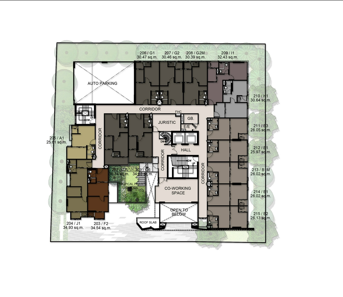 - Type B ขนาด 25.96-30.29 ตร.ม. จำนวน 5 ห้อง